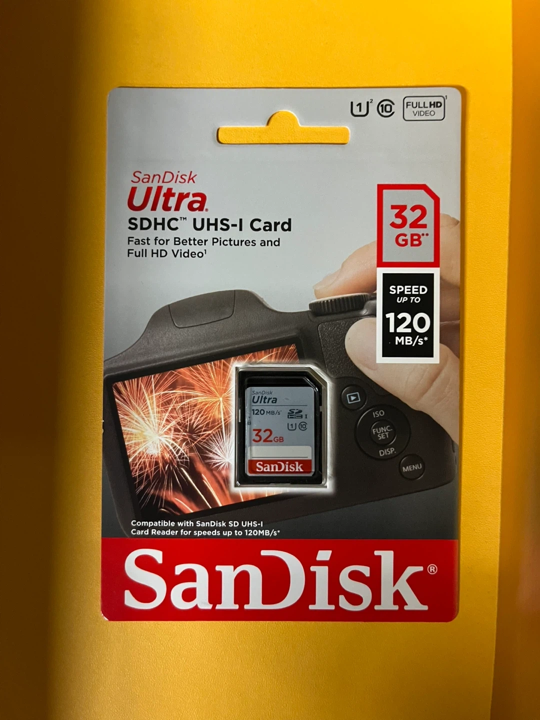 Selling a brand new SanDisk Ultra 32GB SDHC UHS-I Card! It's perfect for capturing better pictures and Full HD video. - 32GB storage capacity - Speed up to 120MB/s - Compatible with SanDisk SD UHS-I Card Reader for speeds up to 120MB/s