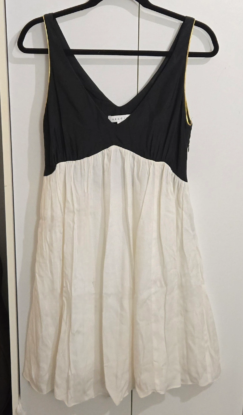 Selling a cute Sandro dress! It's a two-tone design with a black top and white bottom. Perfect for dressing up for an evening.