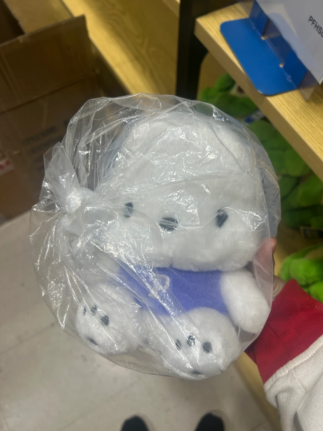 Selling a pochacco stuff animal from hello kitty’s friends. Black white and blue plushie. From a anime series “Hello Kitty and friends supercute adventures” and “Hello Kitty animation series” suppose to be a dog super cute and cuddly never been used ready to find its home