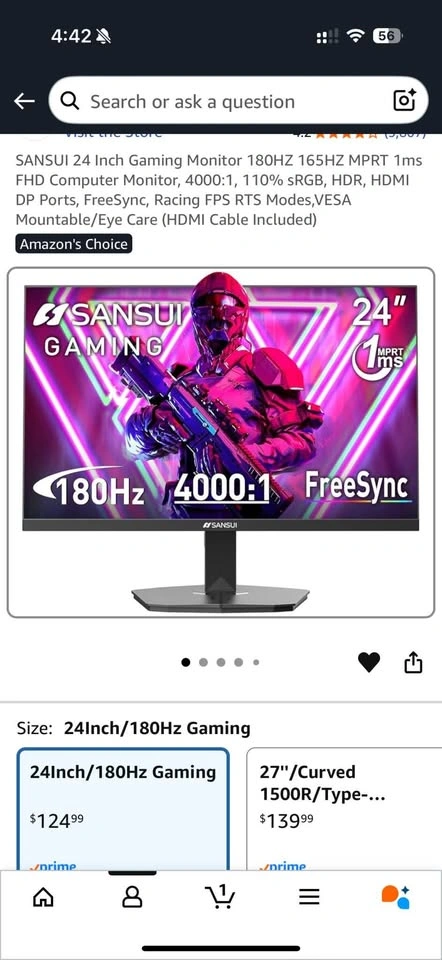 Brand new SANSUI 24” Gaming Monitor (180Hz / 165Hz, 1ms, FHD, FreeSync, HDR). Has a small scratch on the screen that doesn’t affect performance — works perfectly. Comes with stand, box, and HDMI cable.