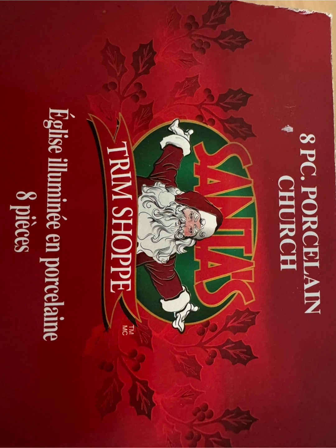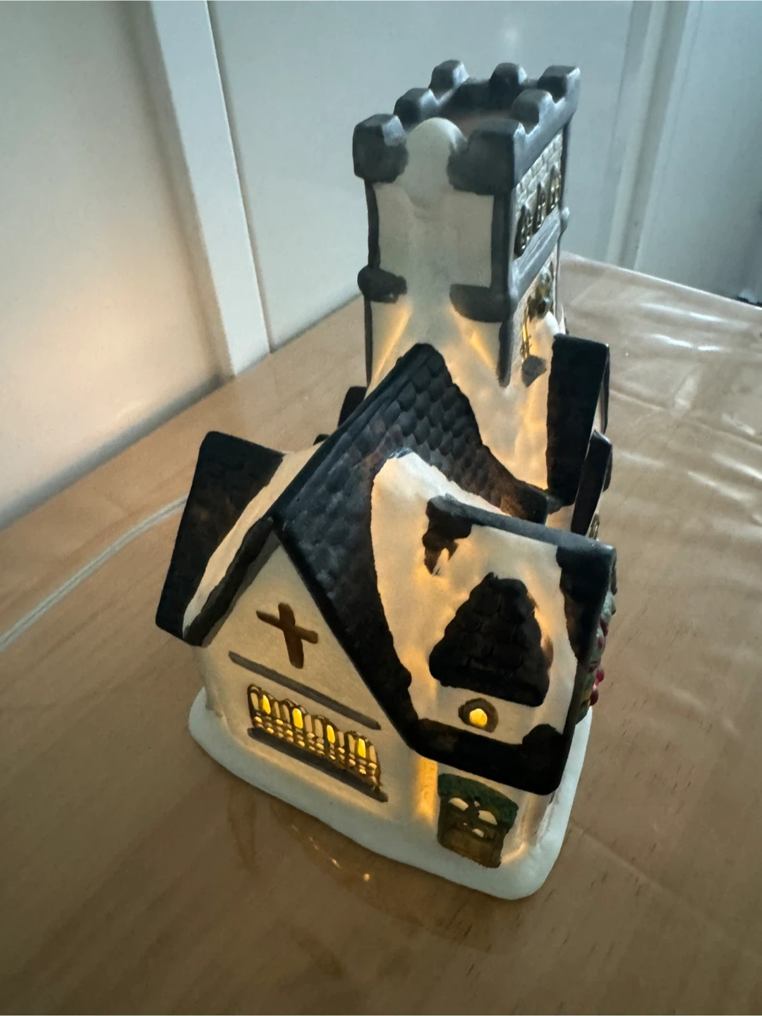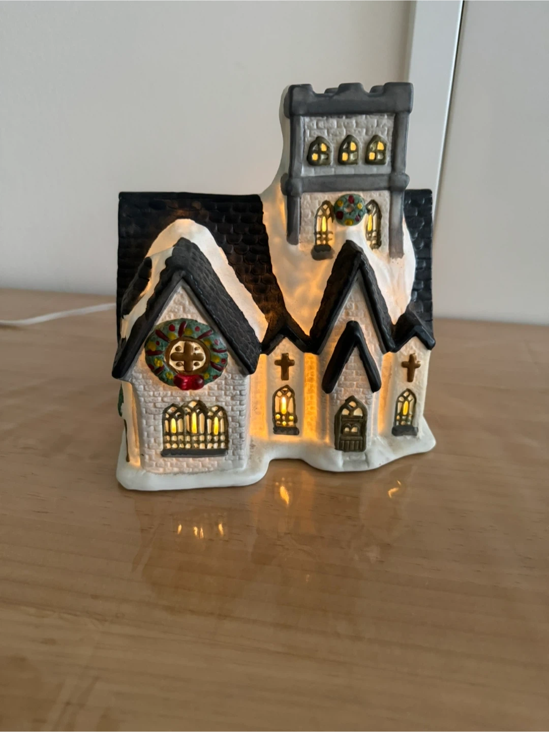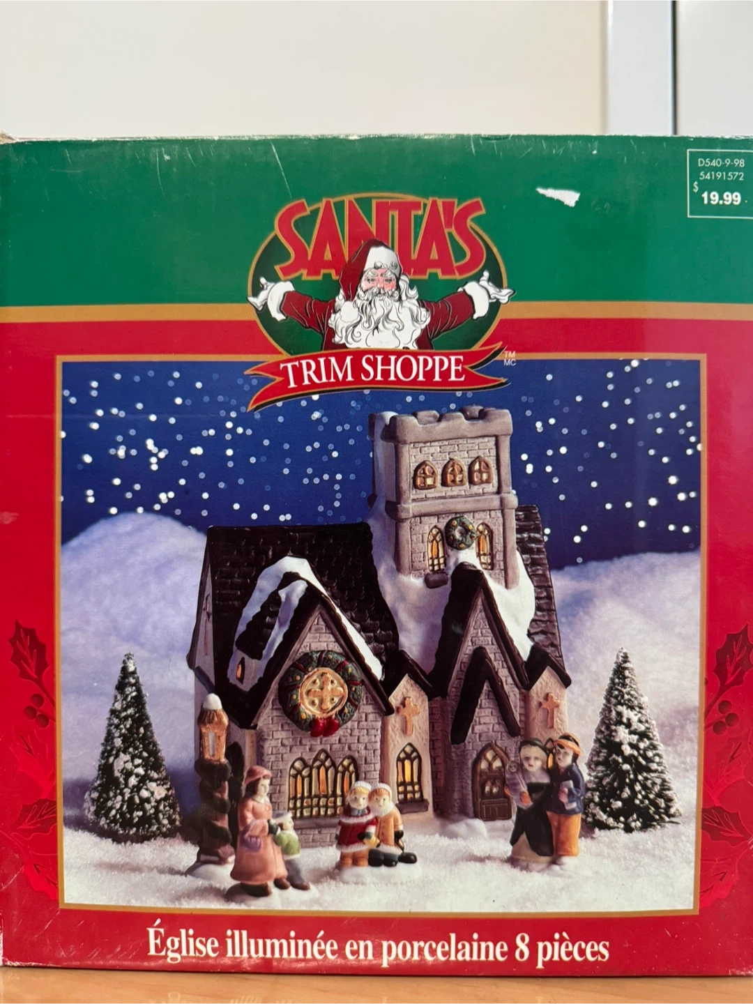 Selling a Santa's Trim Shoppe porcelain church. Also includes a 1.83 m (6') CSA cord with an ON/OFF switch and C7 bulb Pick up at Distillery loop streetcar stop. Please, cash only