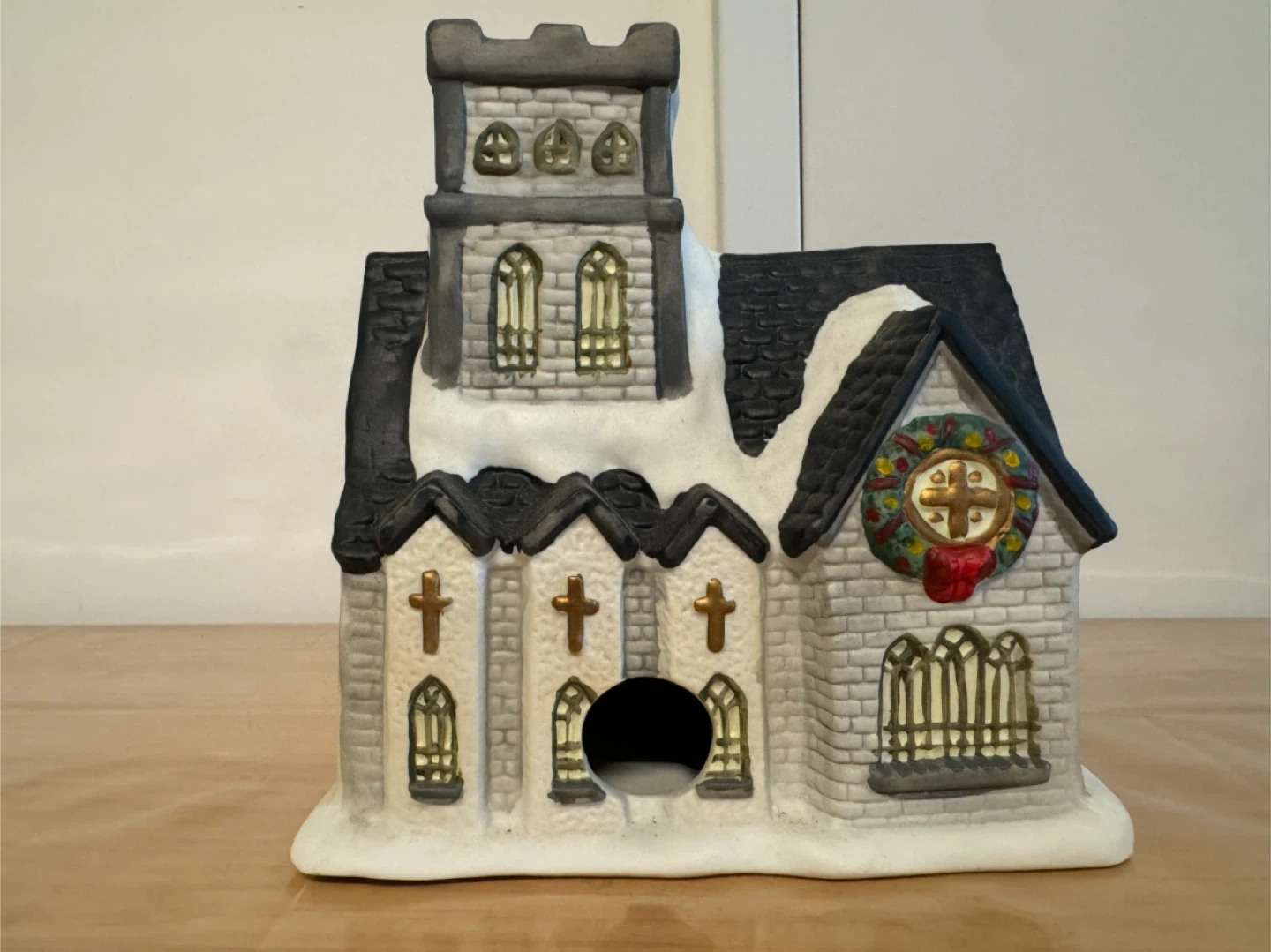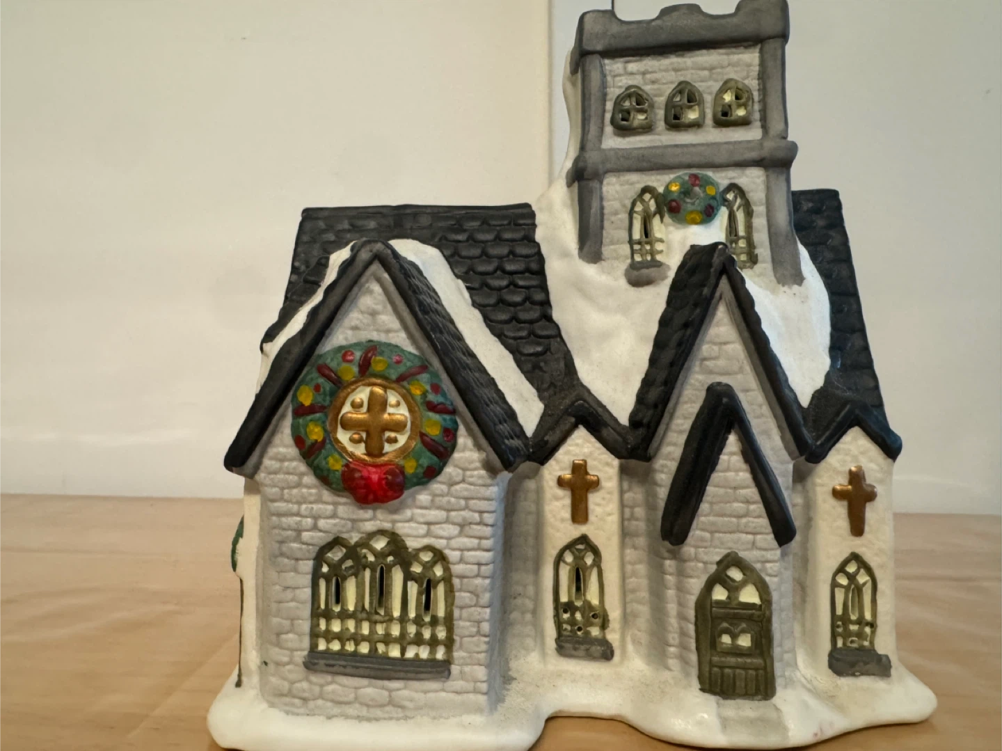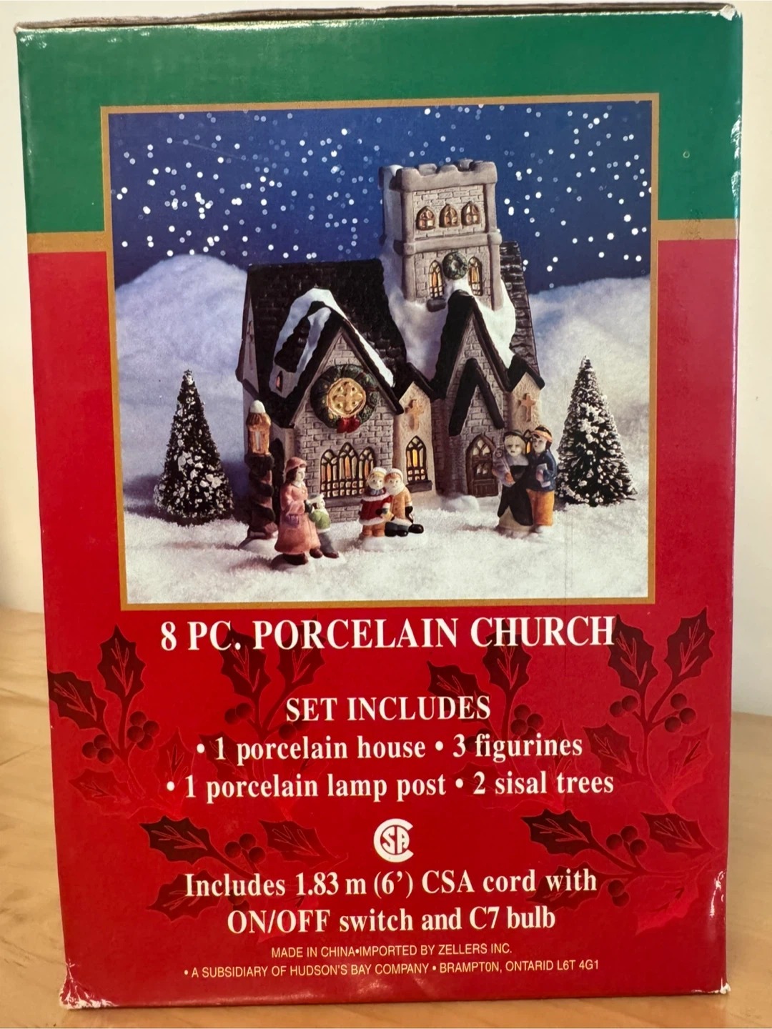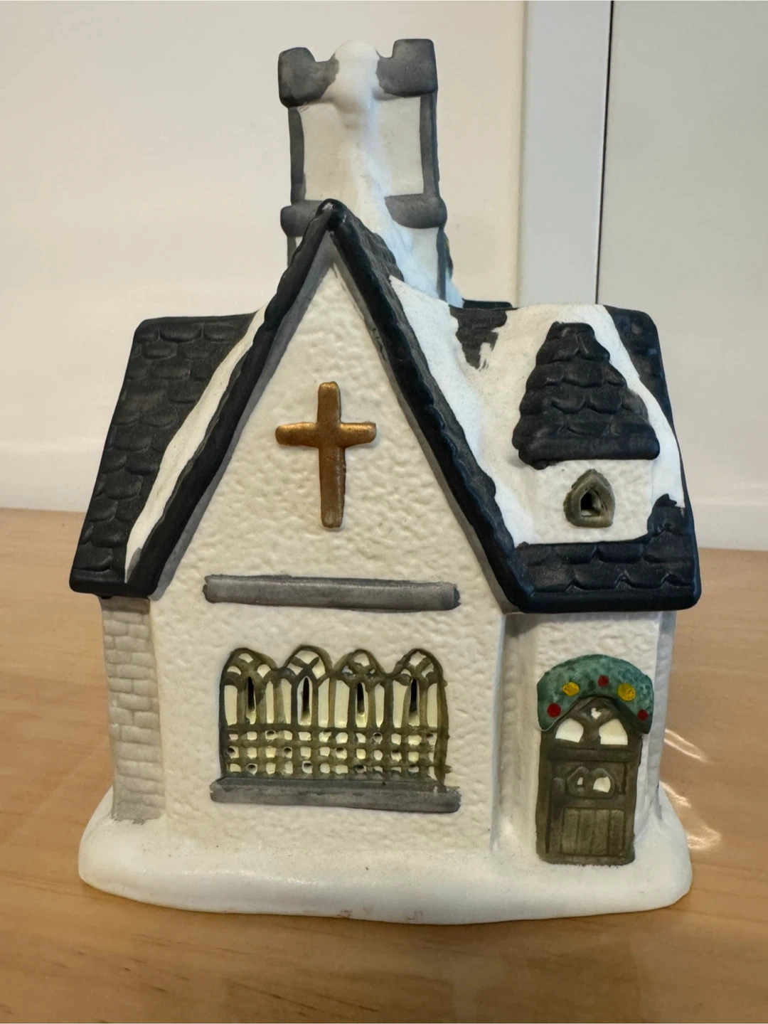 Selling a Santa's Trim Shoppe porcelain church. Also includes a 1.83 m (6') CSA cord with an ON/OFF switch and C7 bulb Pick up at Distillery loop streetcar stop. Please, cash only