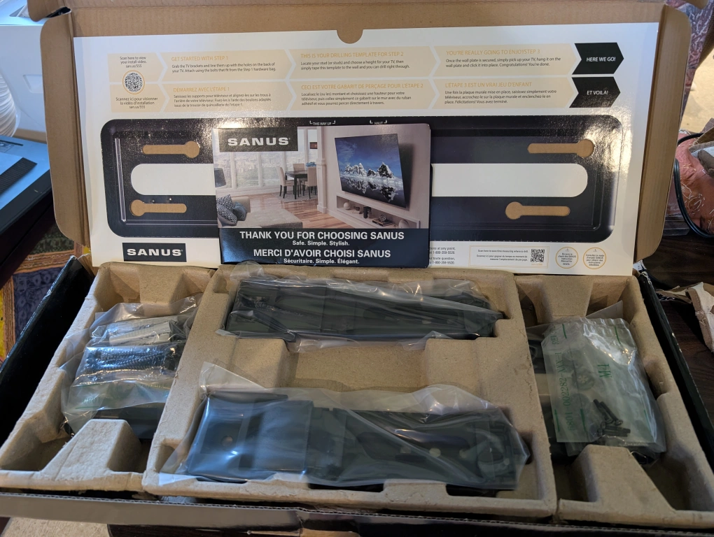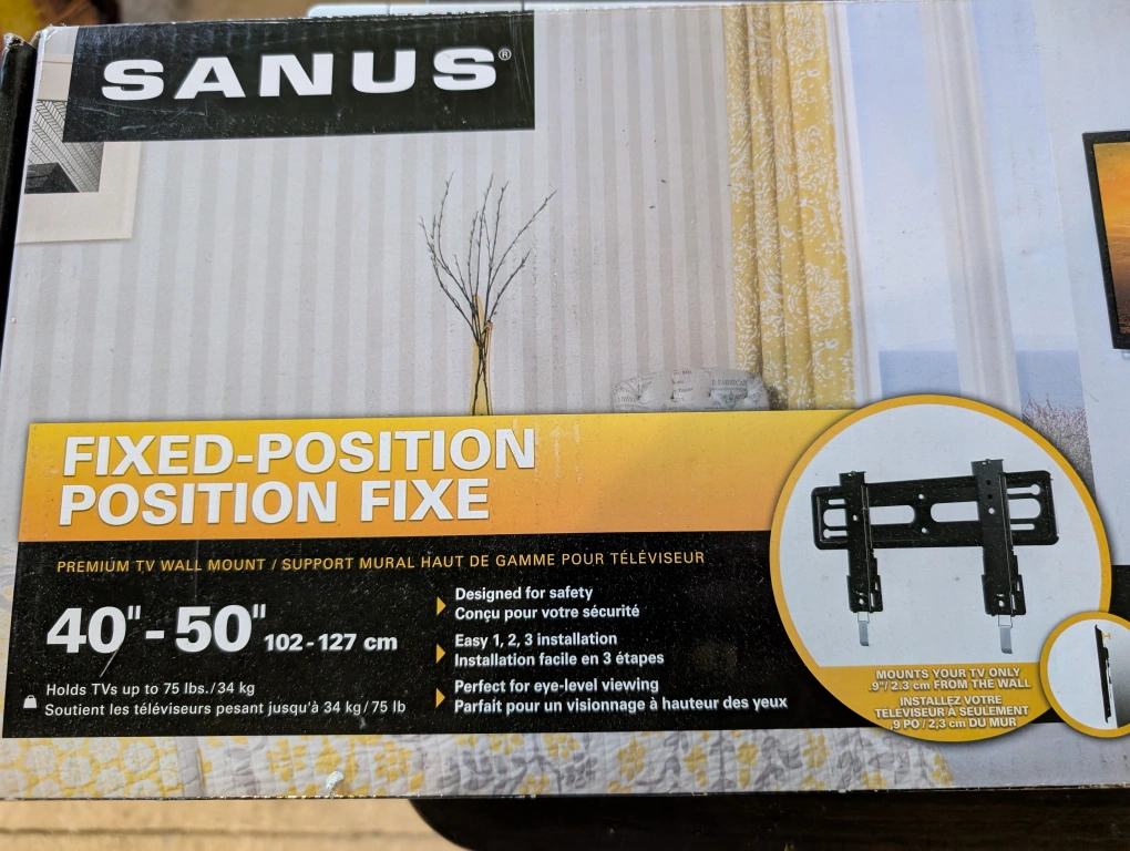 Selling a Sanus fixed-position TV wall mount, perfect for TVs/monitors between 40" and 50" (102-127 cm) - Designed for safety - Easy 1, 2, 3 installation - Perfect for eye-level viewing Holds TVs up to 75 lbs / 34 kg Comes with all the original components and the box