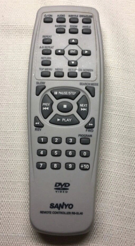 One pre-owned OEM/genuine Sanyo Model Number RB-SL40 DVD Player Remote Control. The remote is in good pre-owned condition. Clean and ready to use!