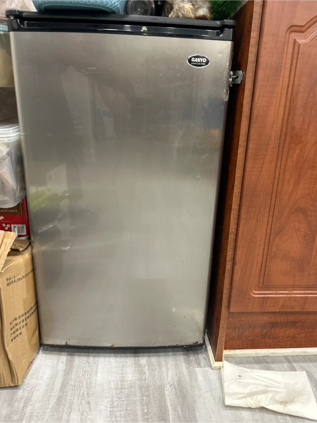 Selling a Sanyo stainless steel mini fridge from the Eclipse Series. Great for a dorm room, bar, office, or small apartment. Has a compact design to fit in tight spaces. The fridge has interior shelving and a door compartment for storage 34” H, 18” W, 21” D Good working condition