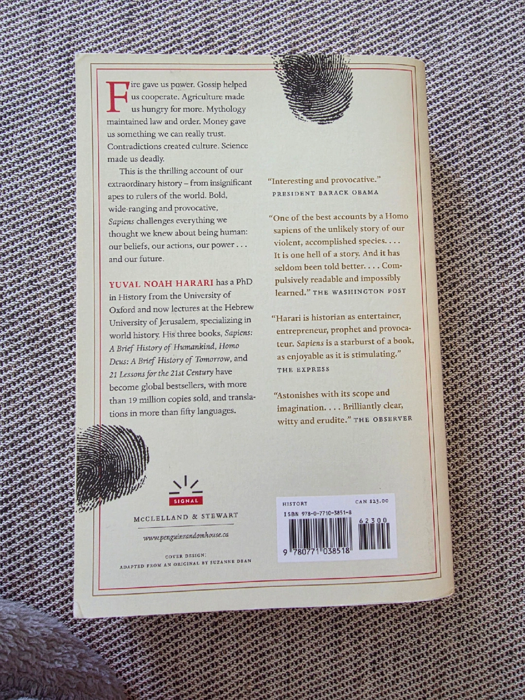 Selling the book Sapiens: A Brief History of Humankind by Yuval Noah Harari It's an international bestseller that explores the history of our species