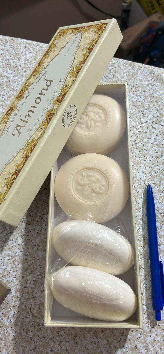 Selling a set of Saponificio Artigianale Fiorentino Almond Three Fine Handmade Soaps. The box is included! Made in Italy