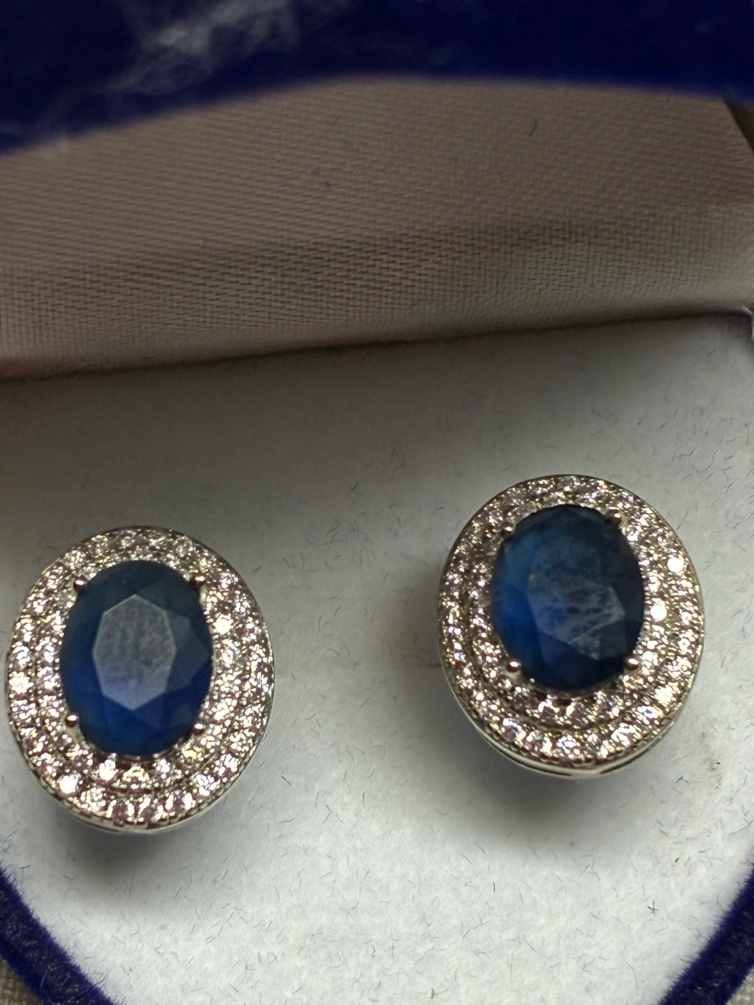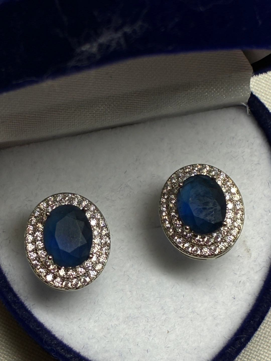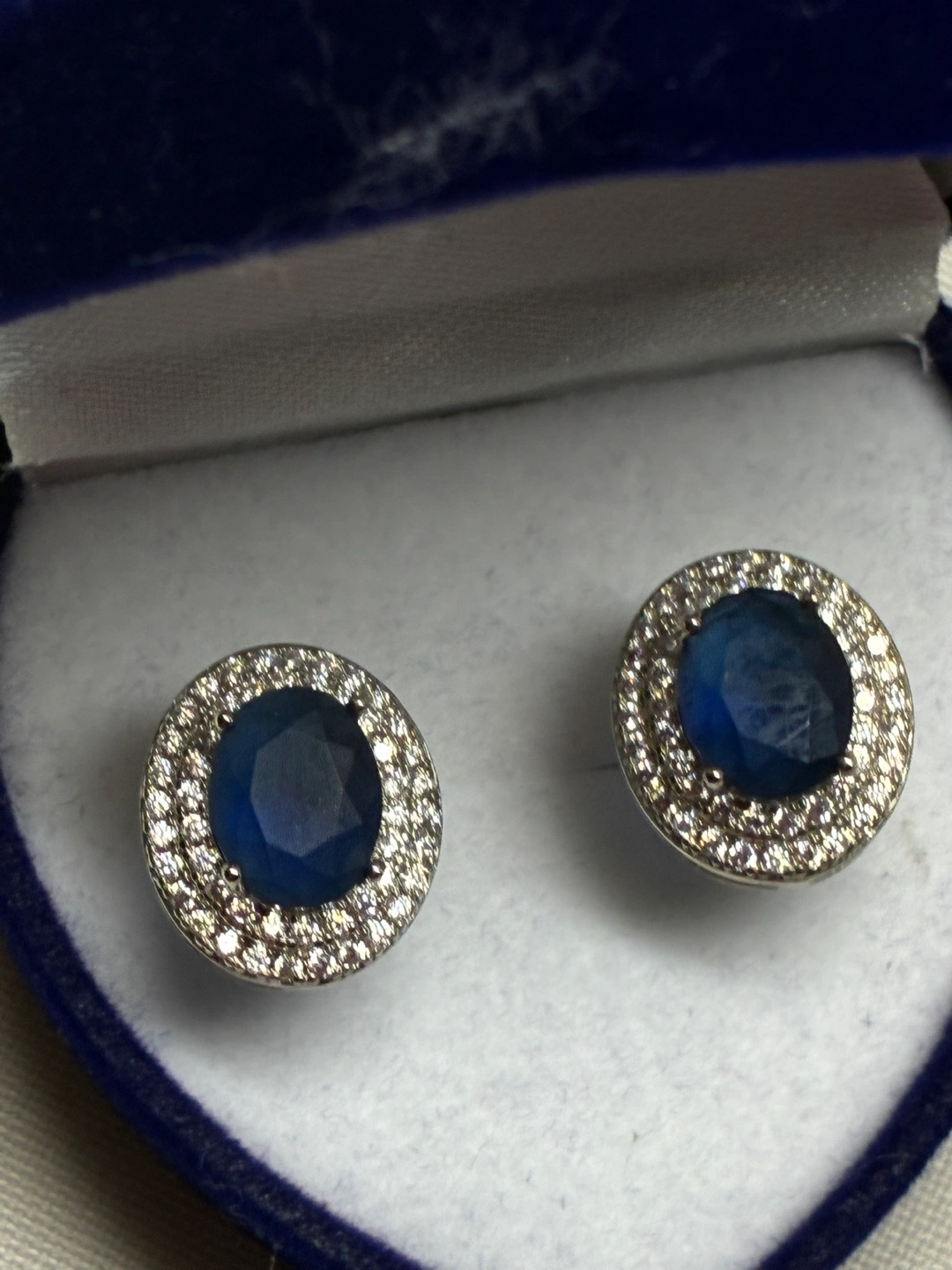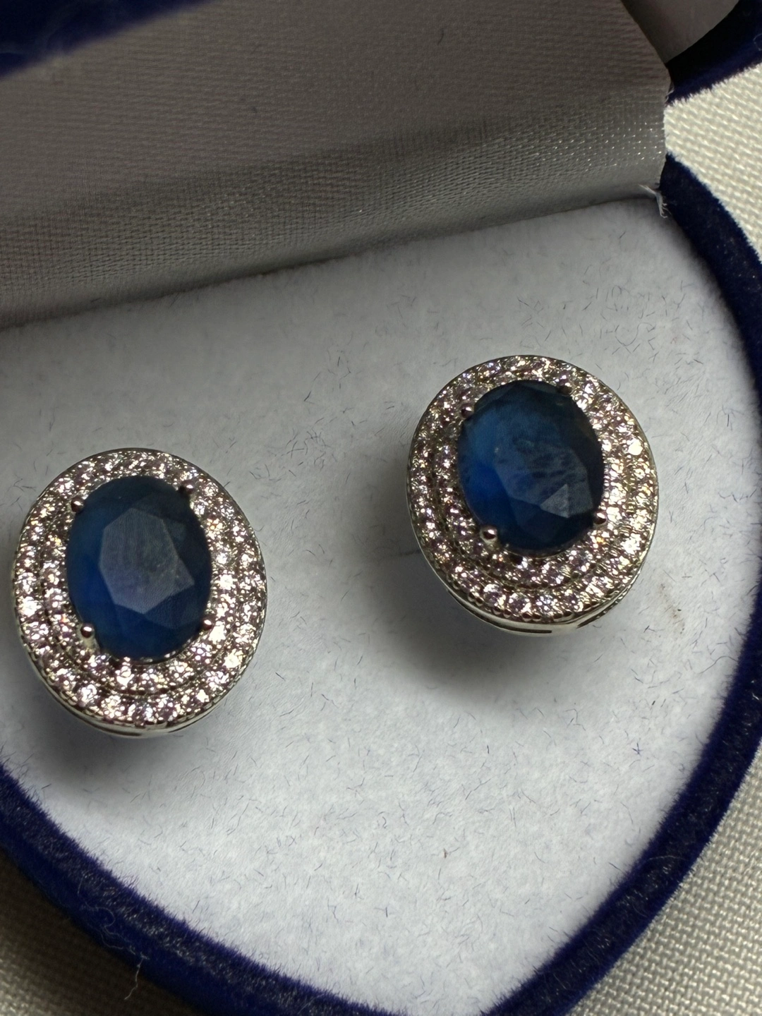 Beautiful sapphire studs earrings in sterling silver, perfect for adding a touch of elegance to any outfit! They come in their original box
