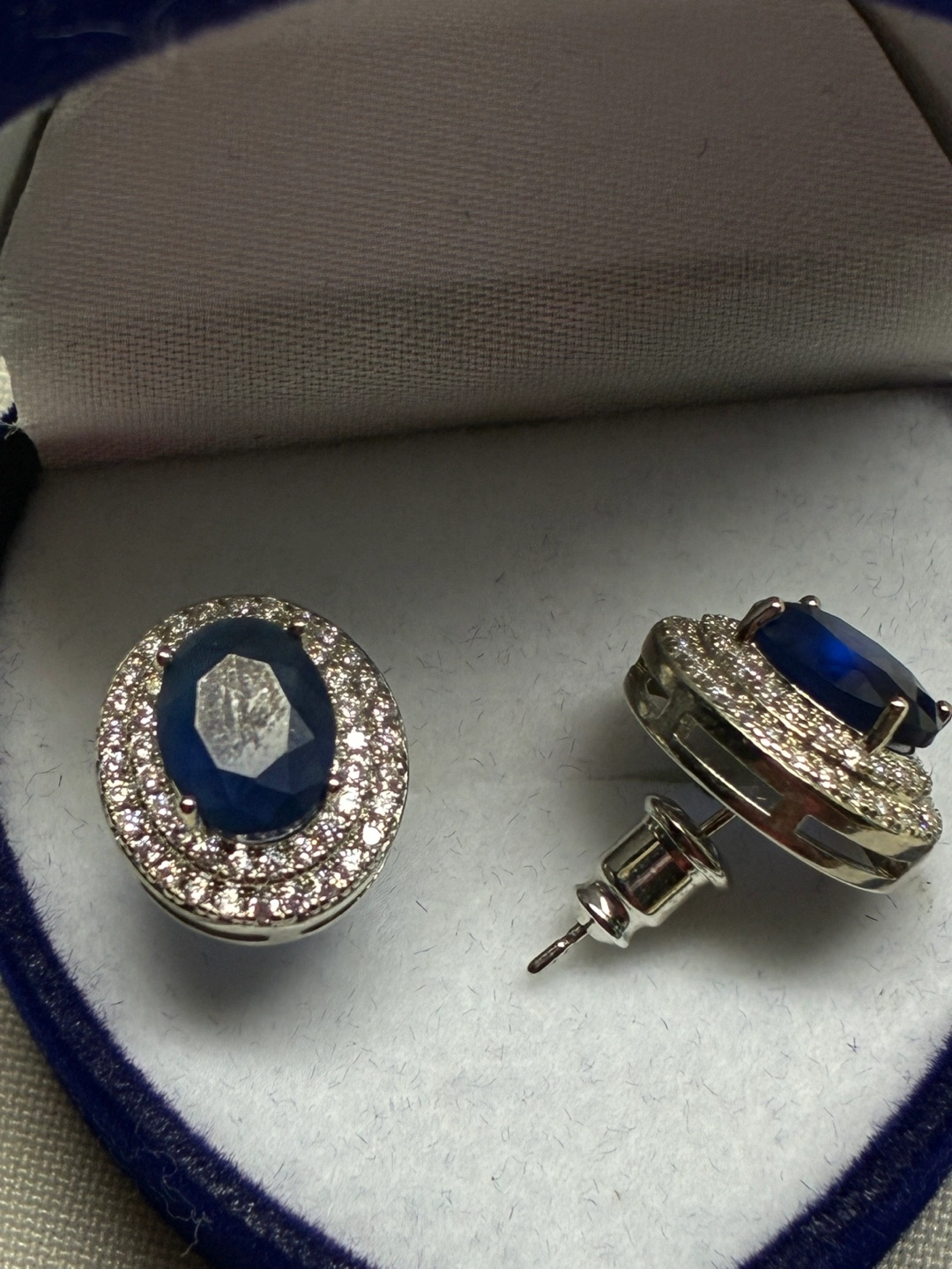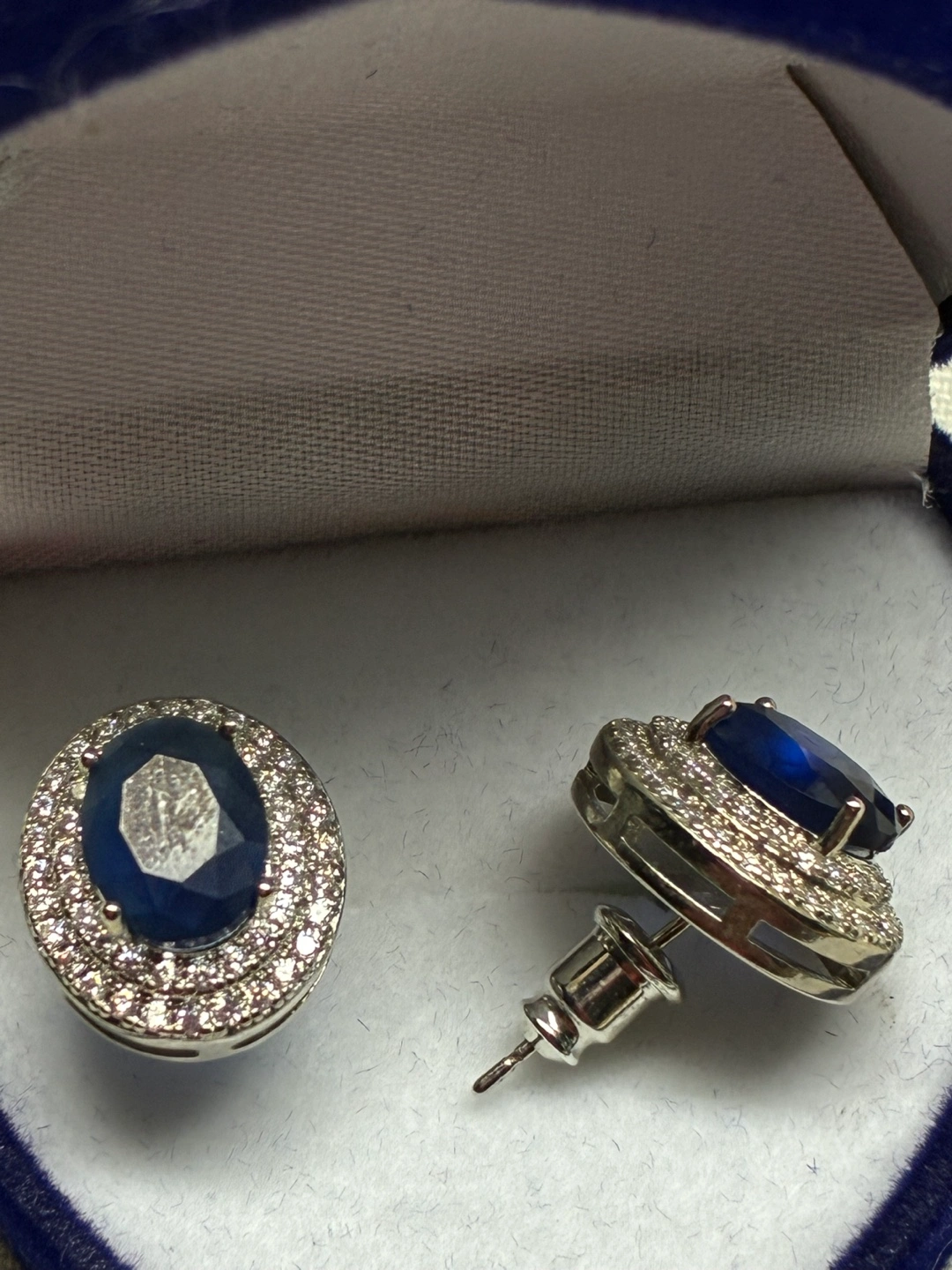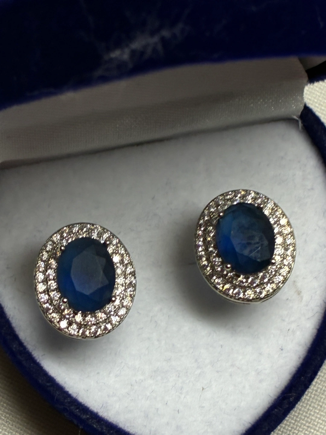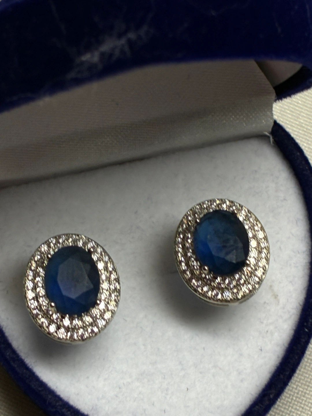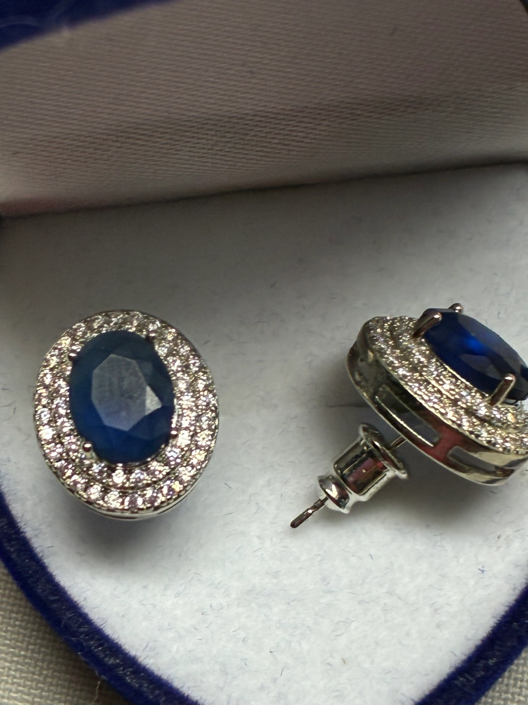 Beautiful sapphire studs earrings in sterling silver, perfect for adding a touch of elegance to any outfit! They come in their original box