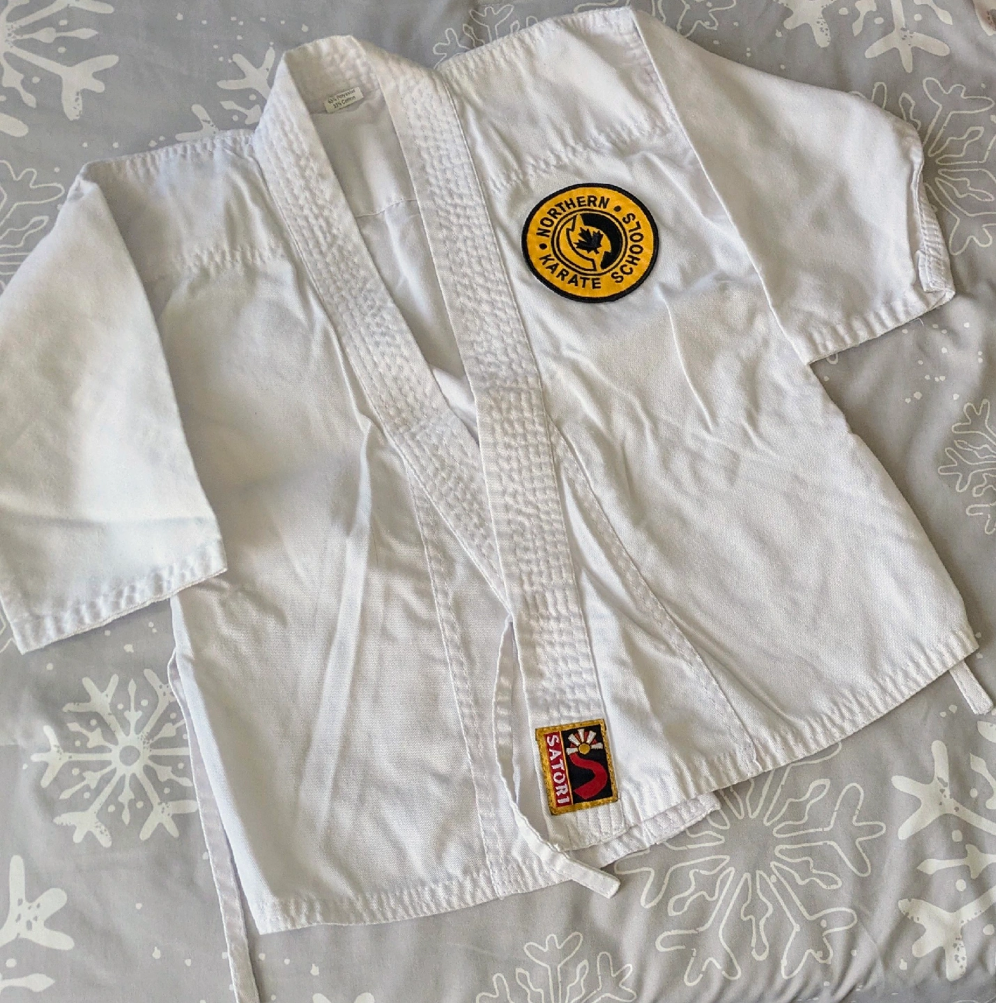 Selling a northern karate gi in white! this uniform is in great shape and perfect for kids starting out in karate. The size is 0/110. Ready for a new home! perfect for kids 3 to 5 years old Joining karate