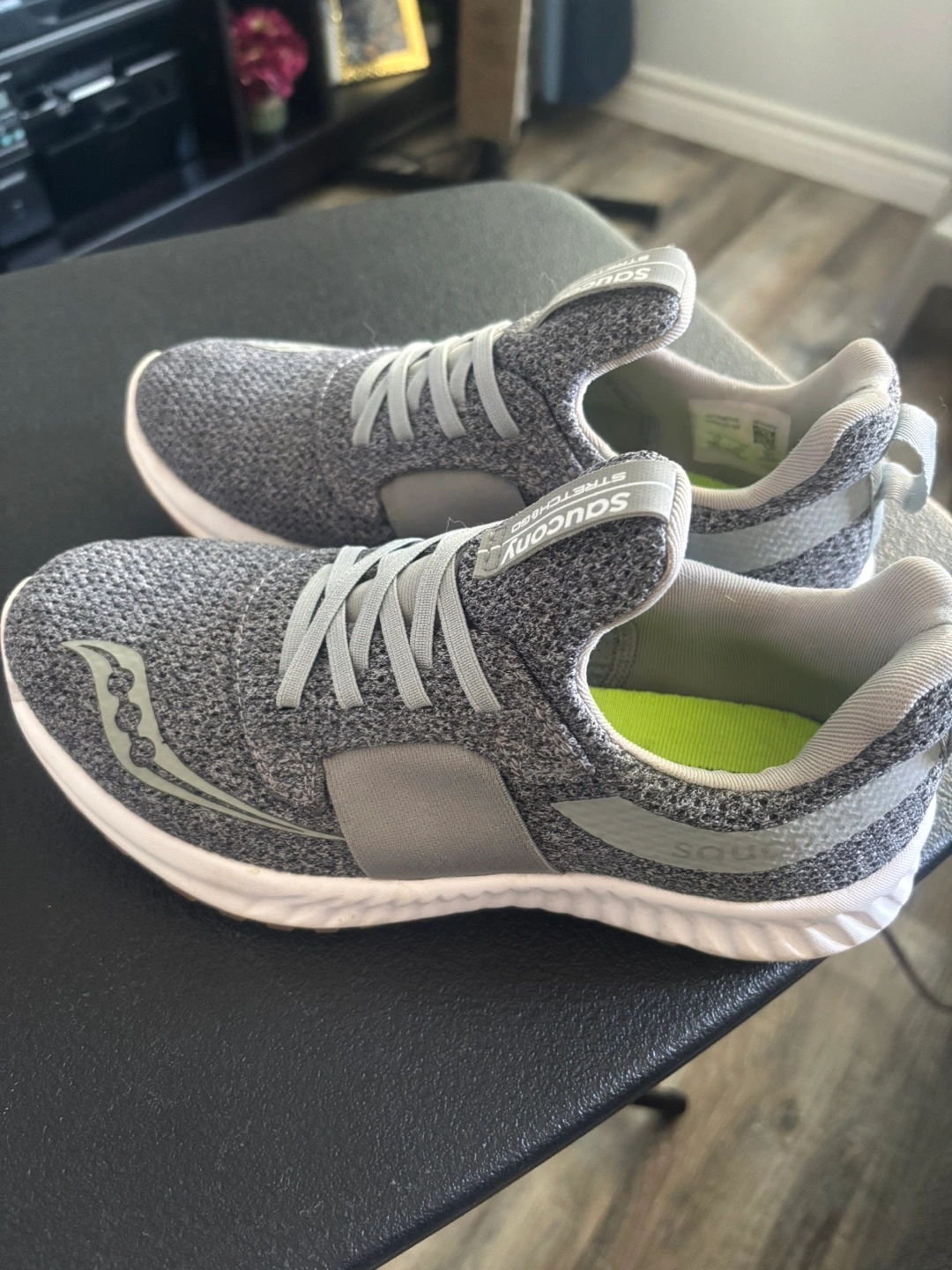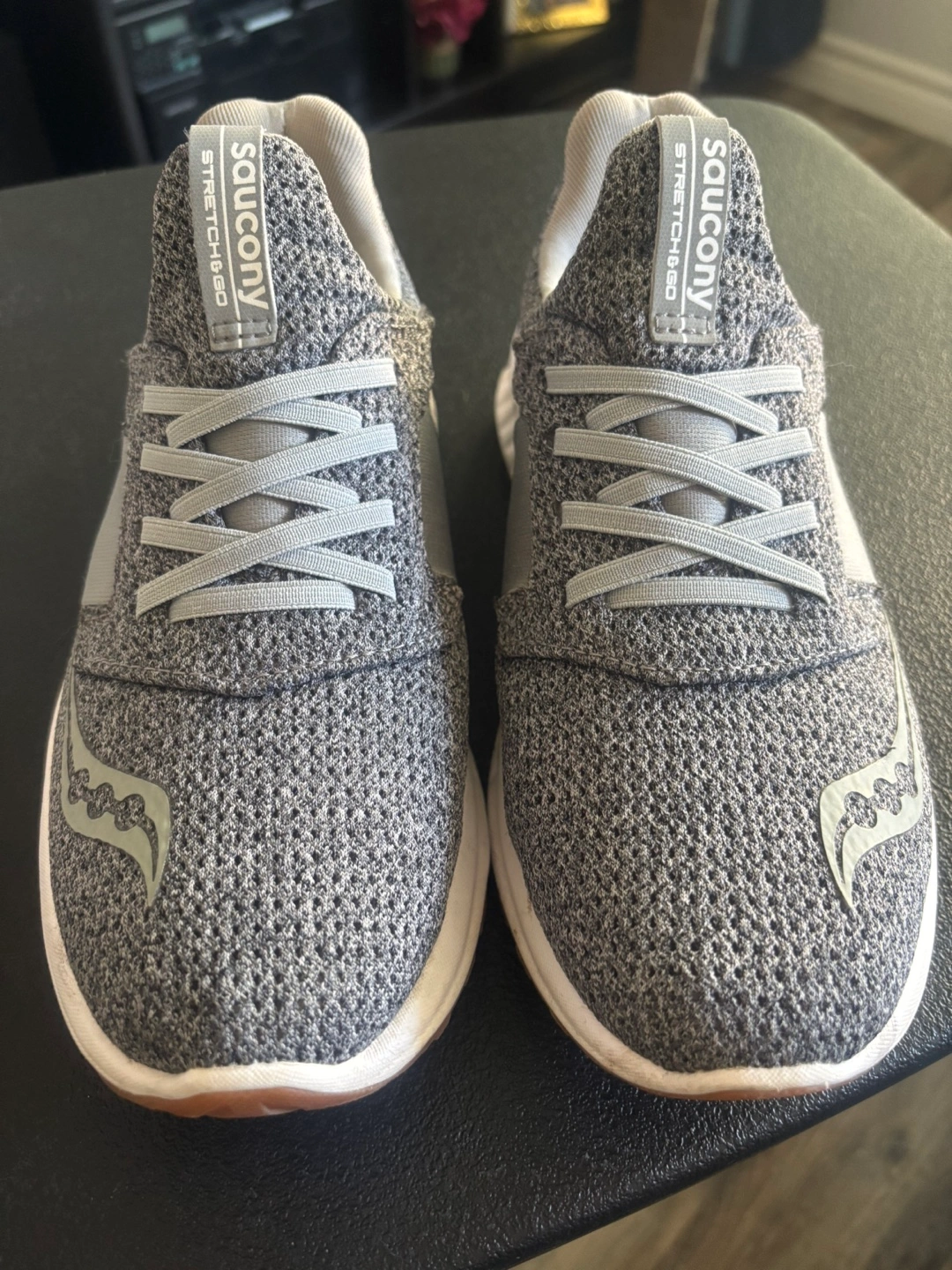 These Saucony Stretch & Go Breeze shoes are in great condition! They're a stylish grey colour and look great. The soles have a unique pattern for good traction. Perfect for everyday wear!
