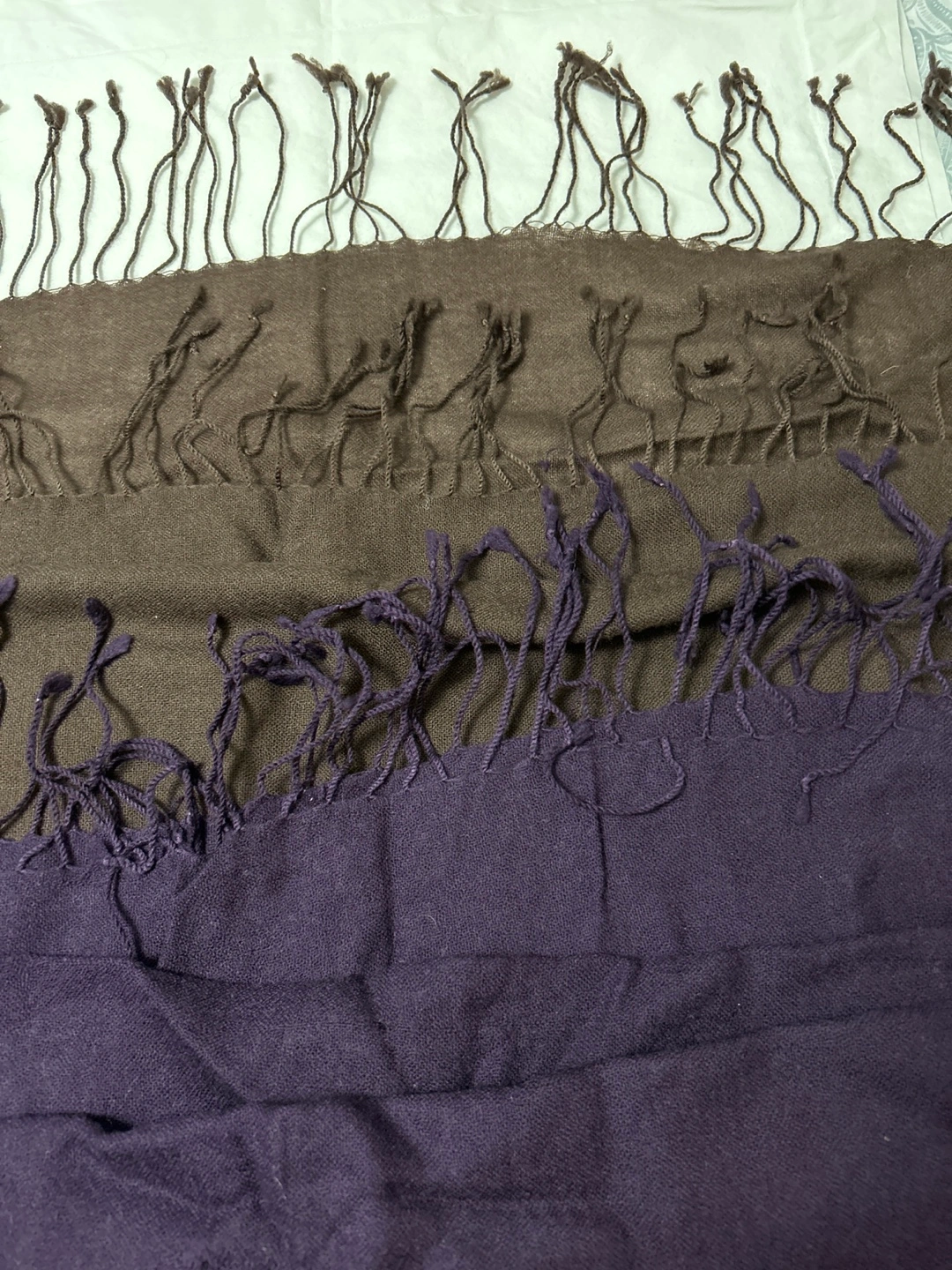 Brown and purple scarves. Fringe detailing. Soft wool material. Perfect for fall and winter. In great and clean condition. Smoke/Pet free home. Cash & Pick up only.