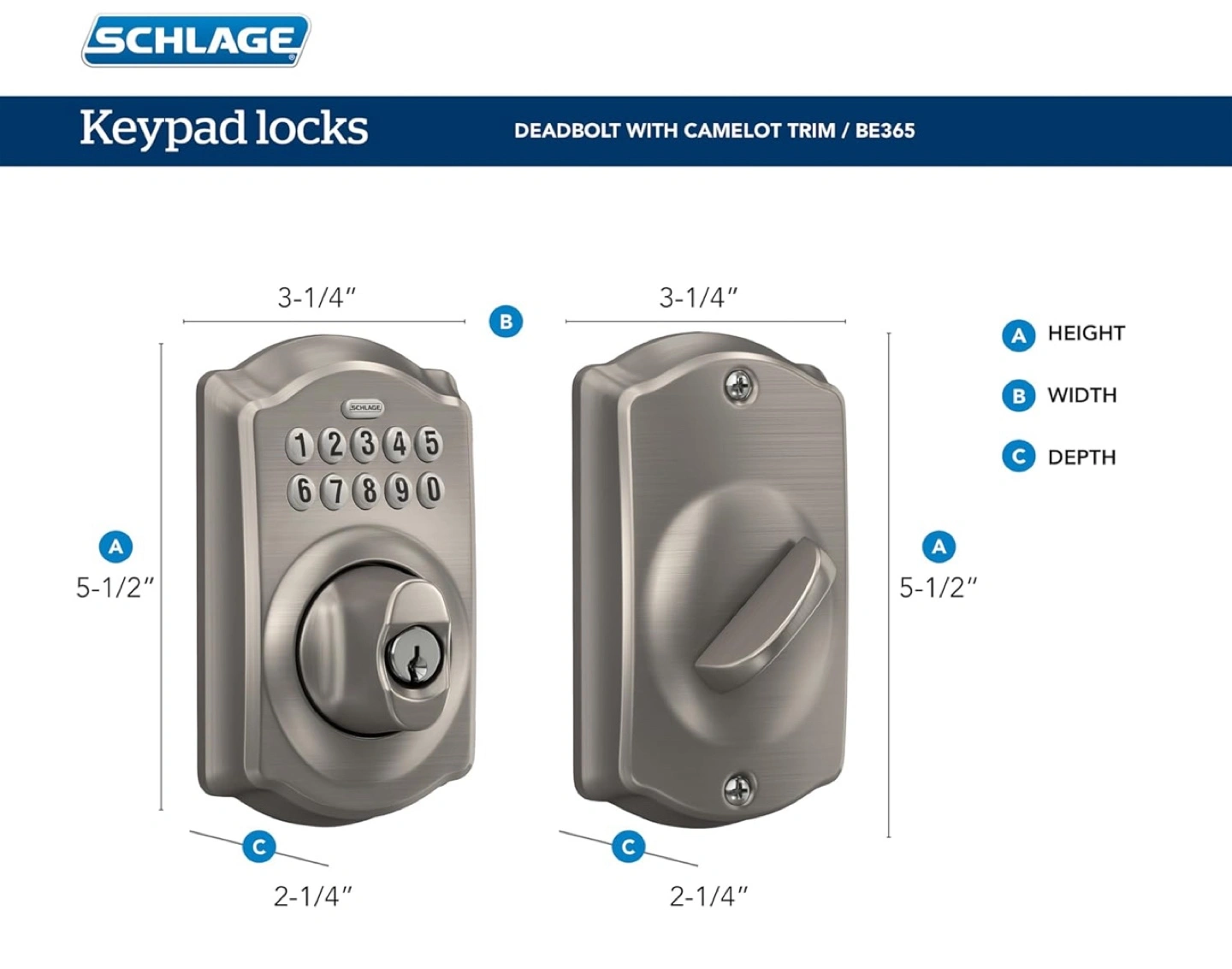 Schlage BE365 CAM 716 Keypad Deadbolt β Brand New!