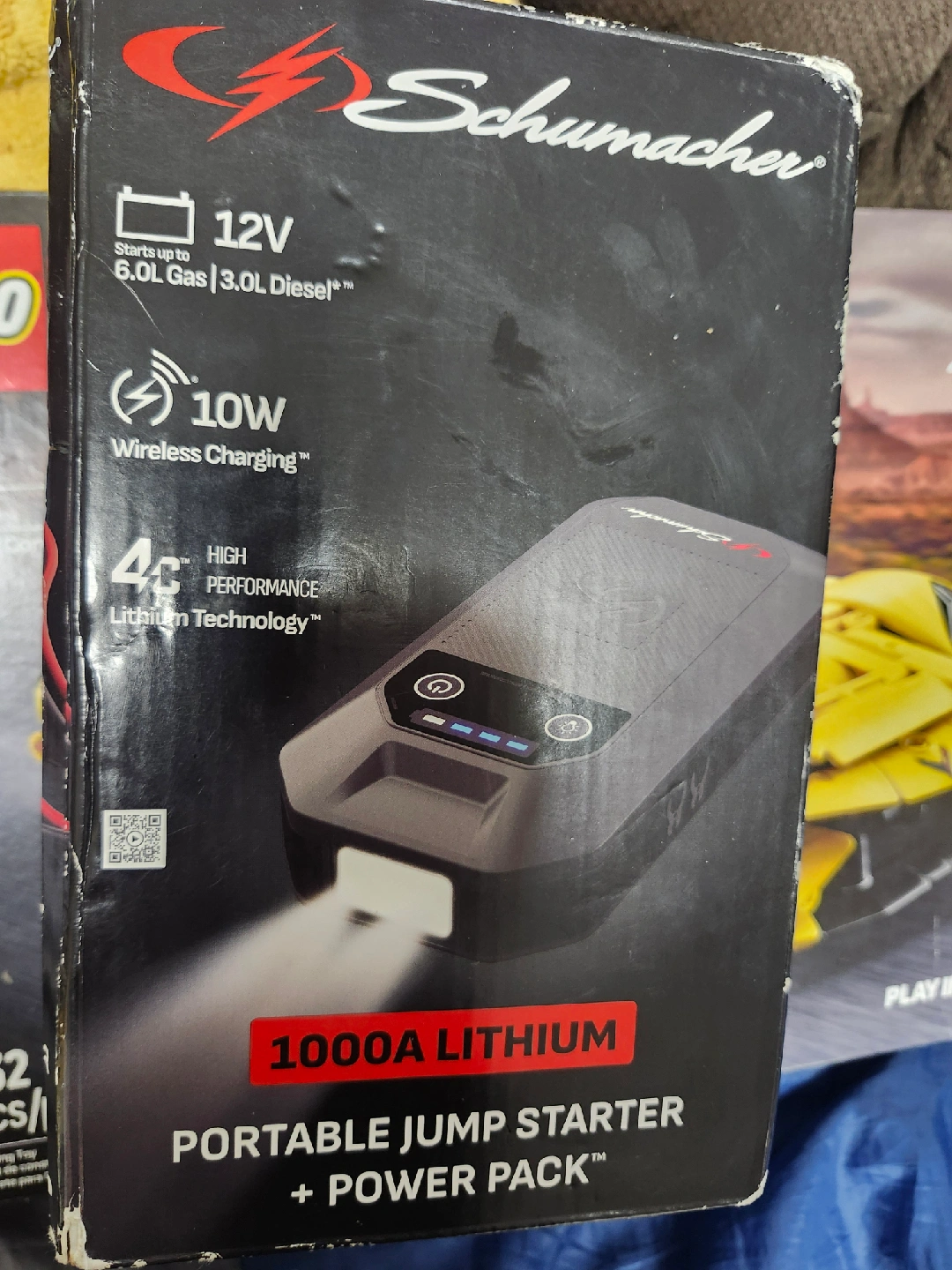 Selling a Schumacher 1000A Lithium Portable Jump Starter + Power Pack. It features 12V output suitable for up to 6.0L gas or 3.0L diesel engines. Also has 10W wireless charging and high-performance lithium technology