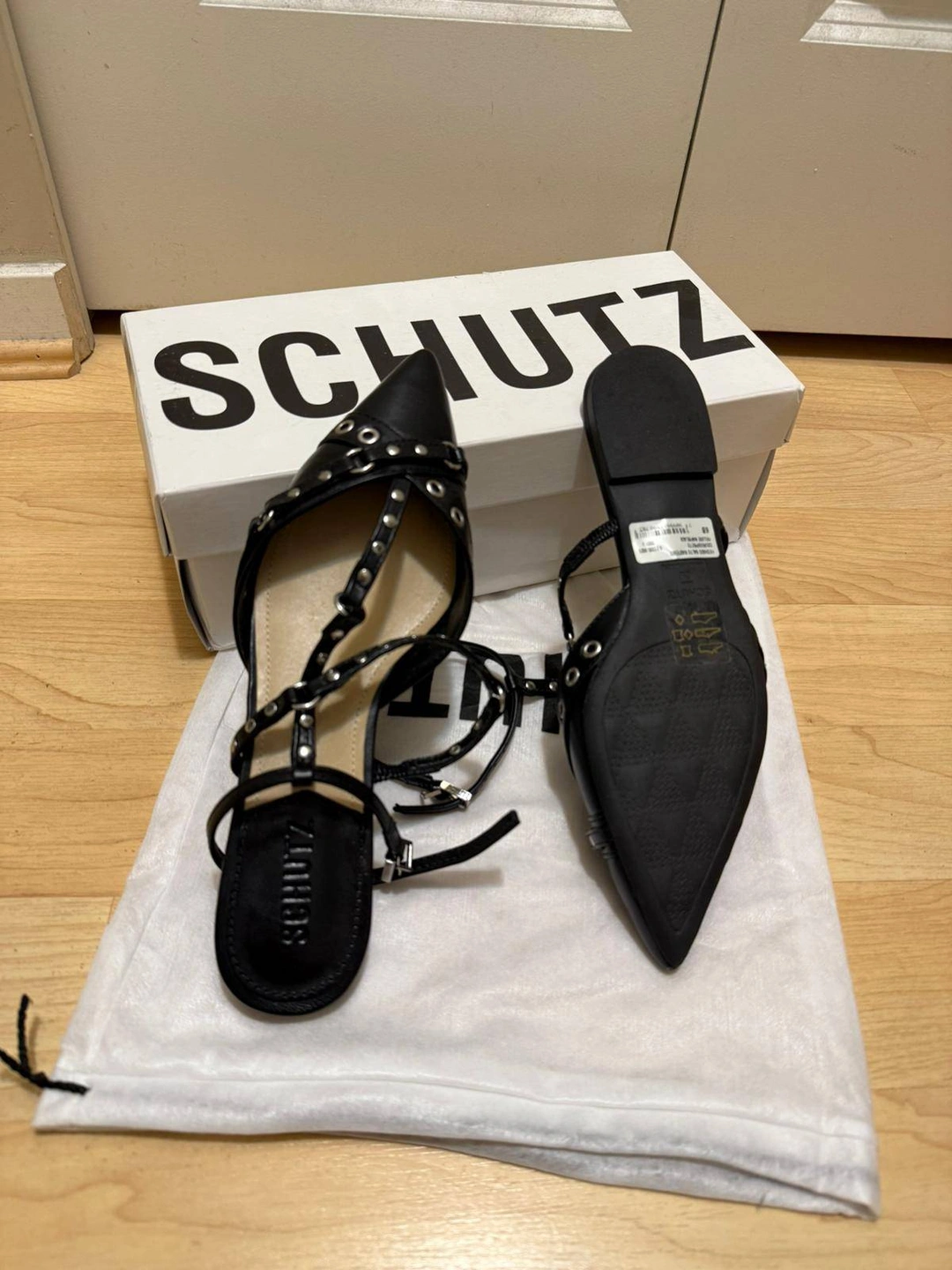 Brand new black Schultz flat T-strap sandals made with deluxe Nappa leather. USA size 6B and never been worn. Comes with a shoe bag. This can be compared to a similar model: https://schutz-shoes.com/products/allure-t-patent-flat-p25-heel-height-flat-s2210900060001 If ad is around, then item is still available. Asking for $80 o.b.o. Cash only please. Pick up near Lougheed Skytrain Station.