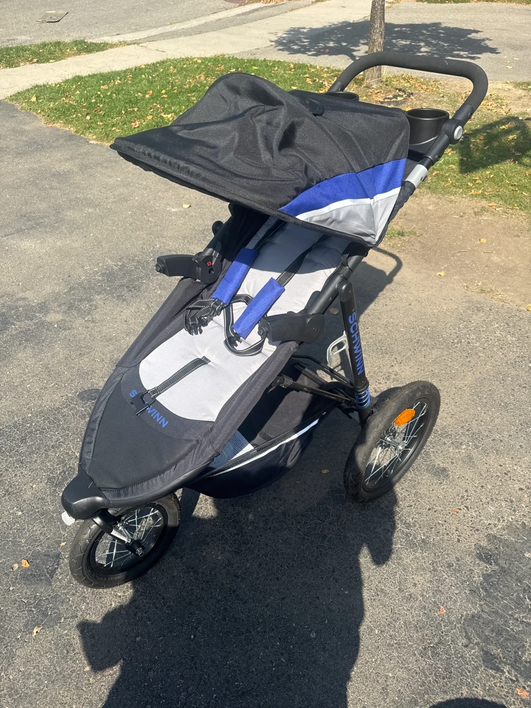 Selling a Schwinn jogging stroller in great condition! Perfect for taking your little one out for a run or a stroll. It's a reliable and sturdy stroller.!