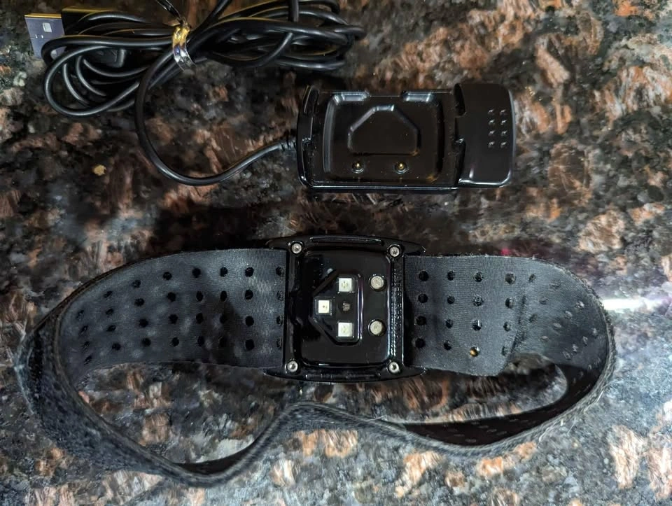 Scosche Rhythm+ heart rate monitor in excellent condition and works 100%. I don't use it anymore since I recently got a new Garmin watch that does a good job of heart rate monitoring. Great for Bluetooth and ANT+ connections. Please inquire with any questions.