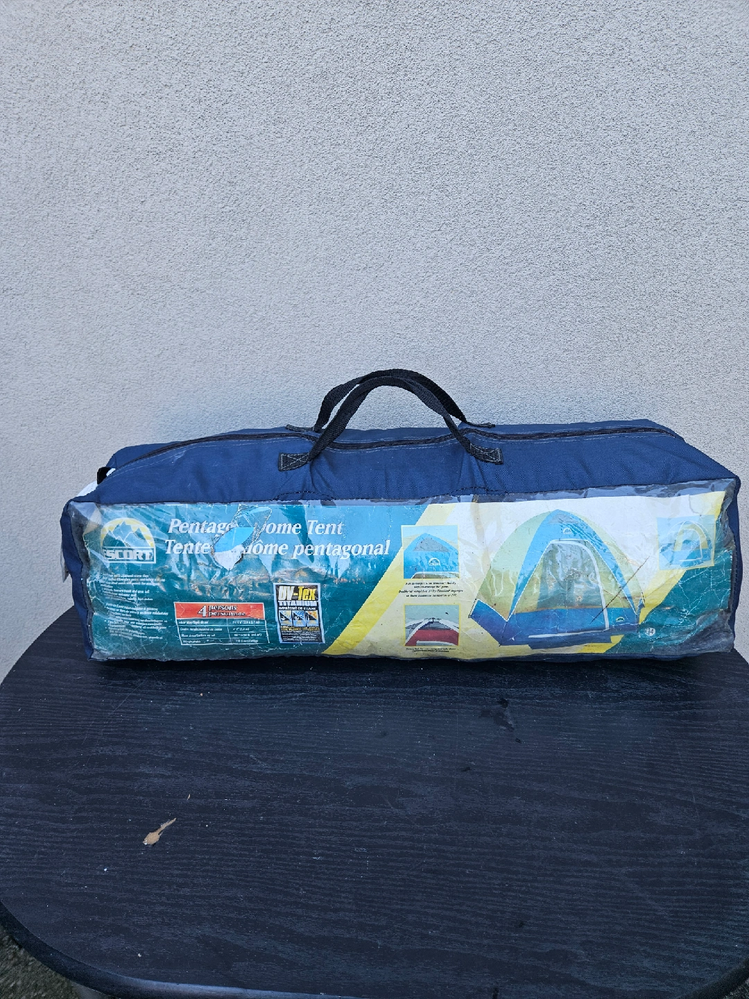 Selling a Scott Pentagon Dome Tent that comfortably sleeps 4 people. It's in great condition and ready for your next camping adventure! The tent packs easily for convenient storage and transport. Perfect for family camping trips or weekend getaways!