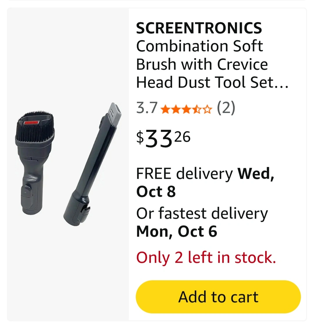 Selling a Screentronics Combination Soft Brush with Crevice Head Dust Tool Set. Retails for $33. Asking $10 cash. Collect from Sheppard and Yonge centre.