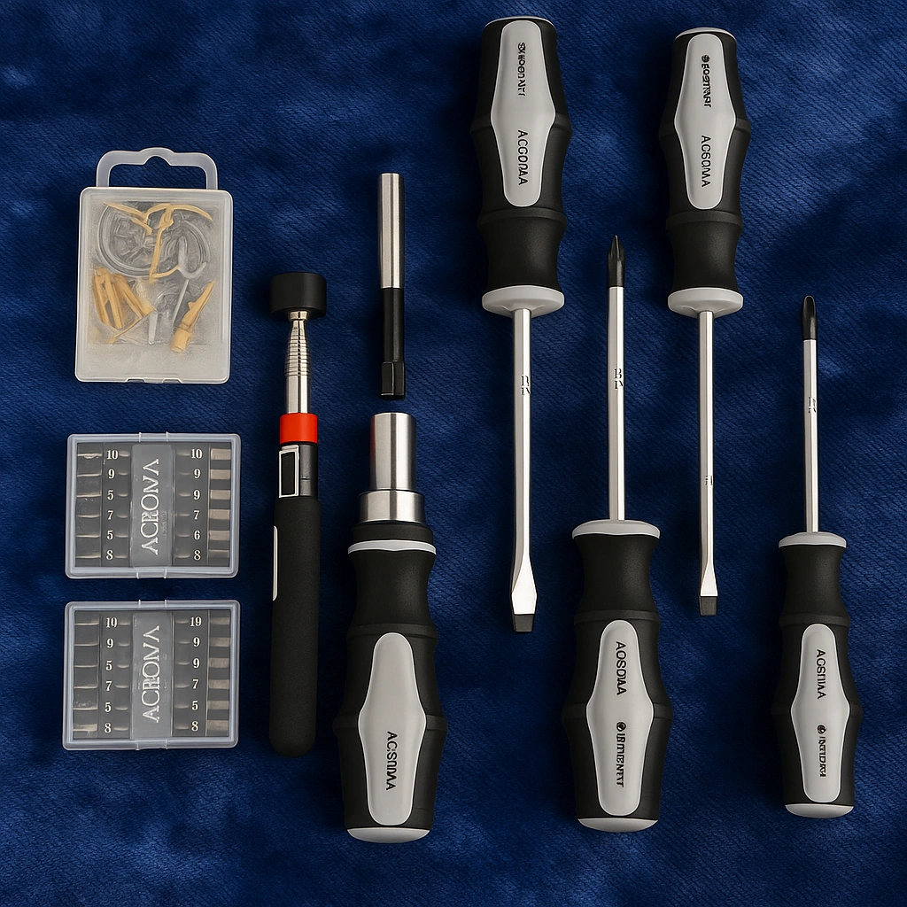 I bought this tool set from Amazon for moving and furniture assembly.I only used it during the move, it was super helpful,and now that I’m settled I don’t need it anymore. The screwdrivers felt solid and easy to grip, with magnetic tips that kept screws steady and stopped them from falling. The magnetic pickup tool was my favorite — perfect for reaching into tight spaces and safely picking up small screws or nails. The picture hanging kit was also included, so I didn’t need to buy extra nails. What’s included (see photos): 1️⃣ 4 durable screwdrivers – flat and Phillips (great grip, solid quality) 2️⃣ Ratcheting handle + magnetic rod with 24 precision bits (Torx, Hex, Phillips, Flat, etc.) 3️⃣ Magnetic pickup tool – perfect for reaching tight spots and safely picking up small screws/nails 4️⃣ Picture hanging kit – nails, wall plugs, and wire (perfect for frames & wall decoration) 5️⃣ Zip-up storage case – keeps everything neat and organized.