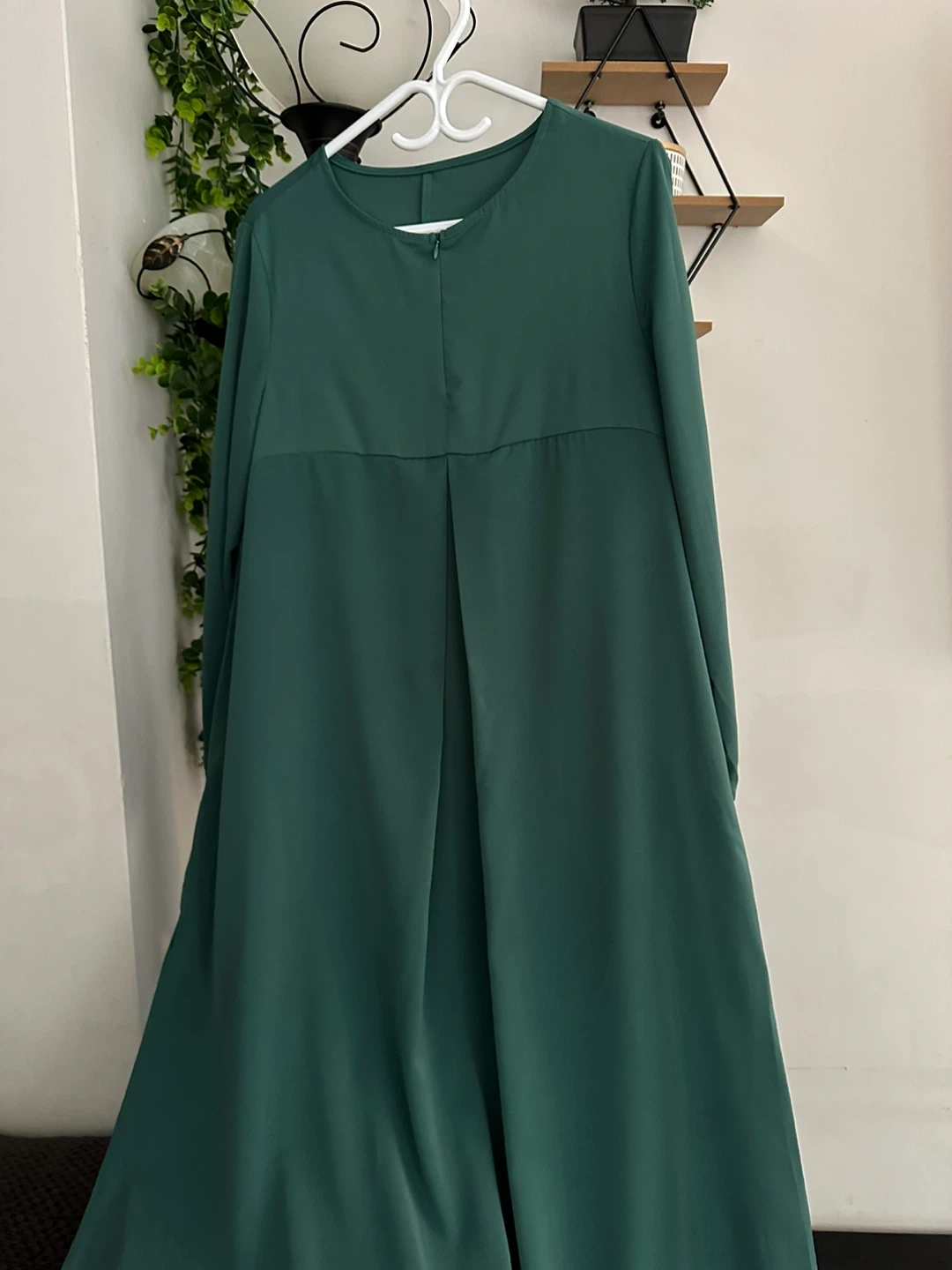 Selling a beautiful green Abaya/long sleeve dress! It has a zip at the top front side with pockets! The dress features a classic design and comfortable fit, perfect for various occasions. It's a great addition to any wardrobe! ✨ Brand new pieces! Size Small - Please refer to last picture for detailed measurement