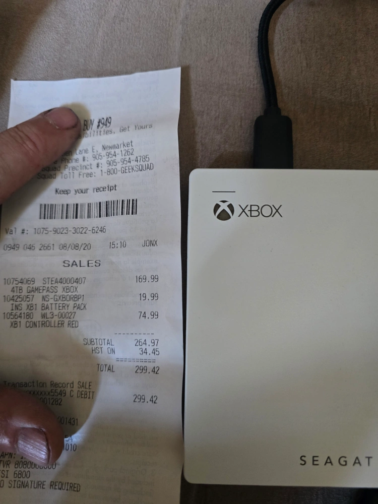 Selling a Seagate 4TB Game Drive for Xbox. This portable drive lets you take your games and saves with you. It's got massive storage, up to 4TB of external storage. Dimensions are 11.71cm x 8cm x 2.08cm. I have 15 or 20 good games installed on the Drive !!! Approximately $300-500 worth of games. only selling because my Xbox One S Burnt out ๐ otherwise I would still be playing anytime it rains or is too cold ๐ฅถ outside lol