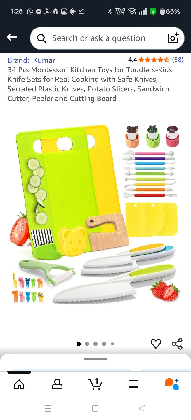 This is a 34-piece Montessori kitchen toy set by iKumar, perfect for toddlers and kids! It includes safe knives, serrated plastic knives, potato slicers, a sandwich cutter, a peeler, and a cutting board. Great for real cooking experiences!