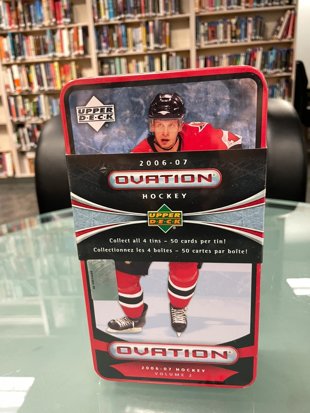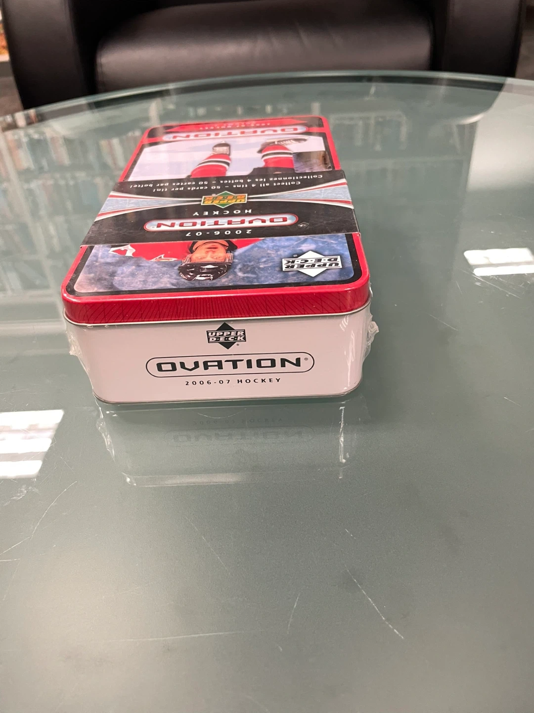 Selling a sealed Upper Deck Ovation 2006-07 Volume 2 Hockey trading cards 50 in tin. Condition is 10/10. Pick up is Queen's Quay W. and York St. no shipping or trades. $100 OBO. **If the Ad is still on the item is still available**