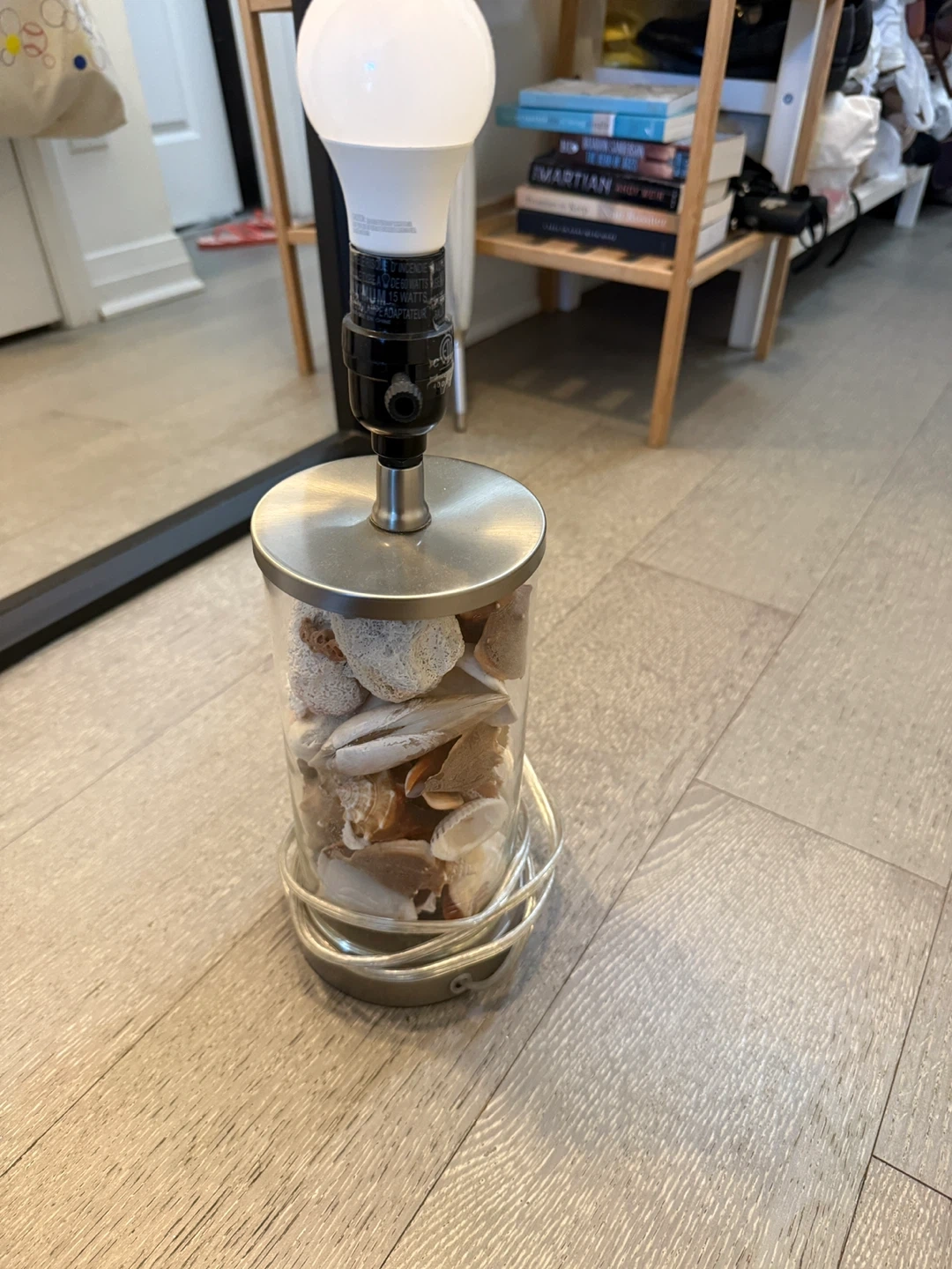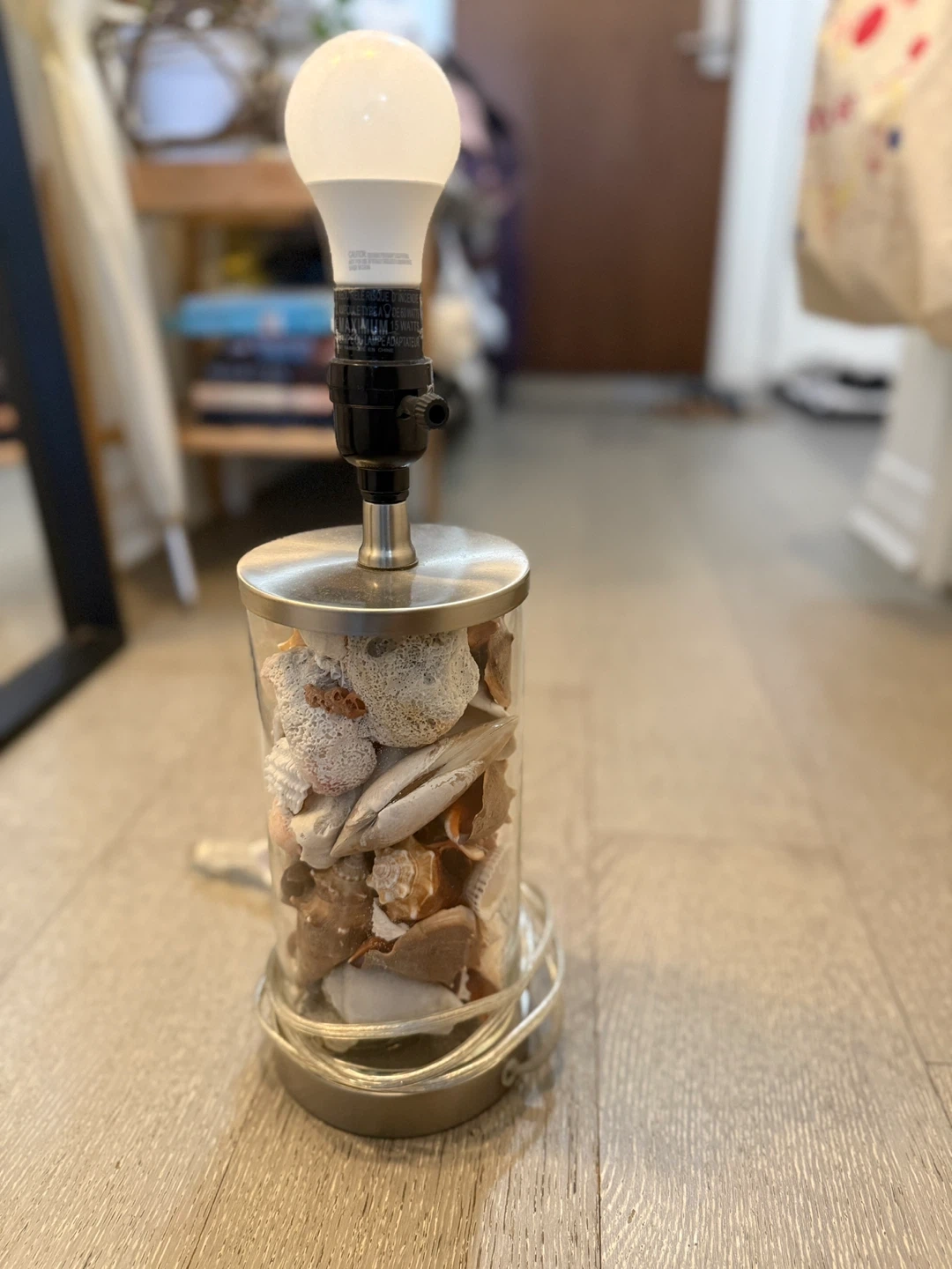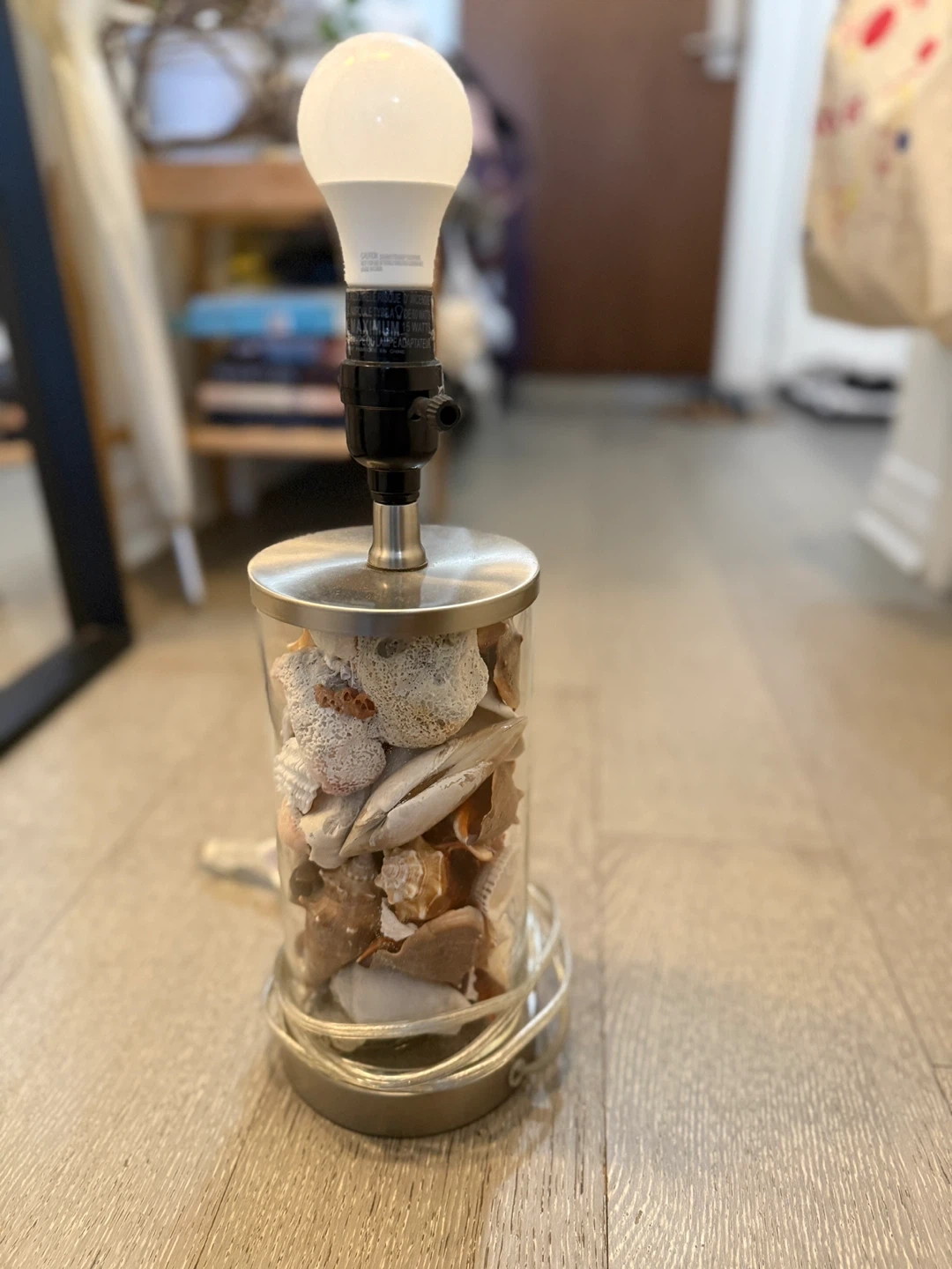Selling a cute table lamp filled with seashells! It adds a beachy vibe to any room. The lamp is in great condition and ready to brighten up your space