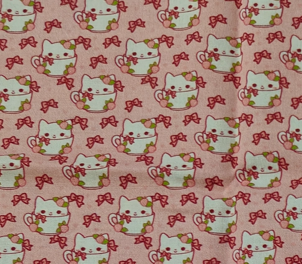 Sewing kit with a variety of fabric pieces, ribbons, and buttons. The kit includes a sewing box with a pink and black pattern, several spools of ribbon (Celebrate It, Offray), and containers of buttons. Great for crafting and sewing projects! *Can mix and match with other fabric prints from other kits and boxes.