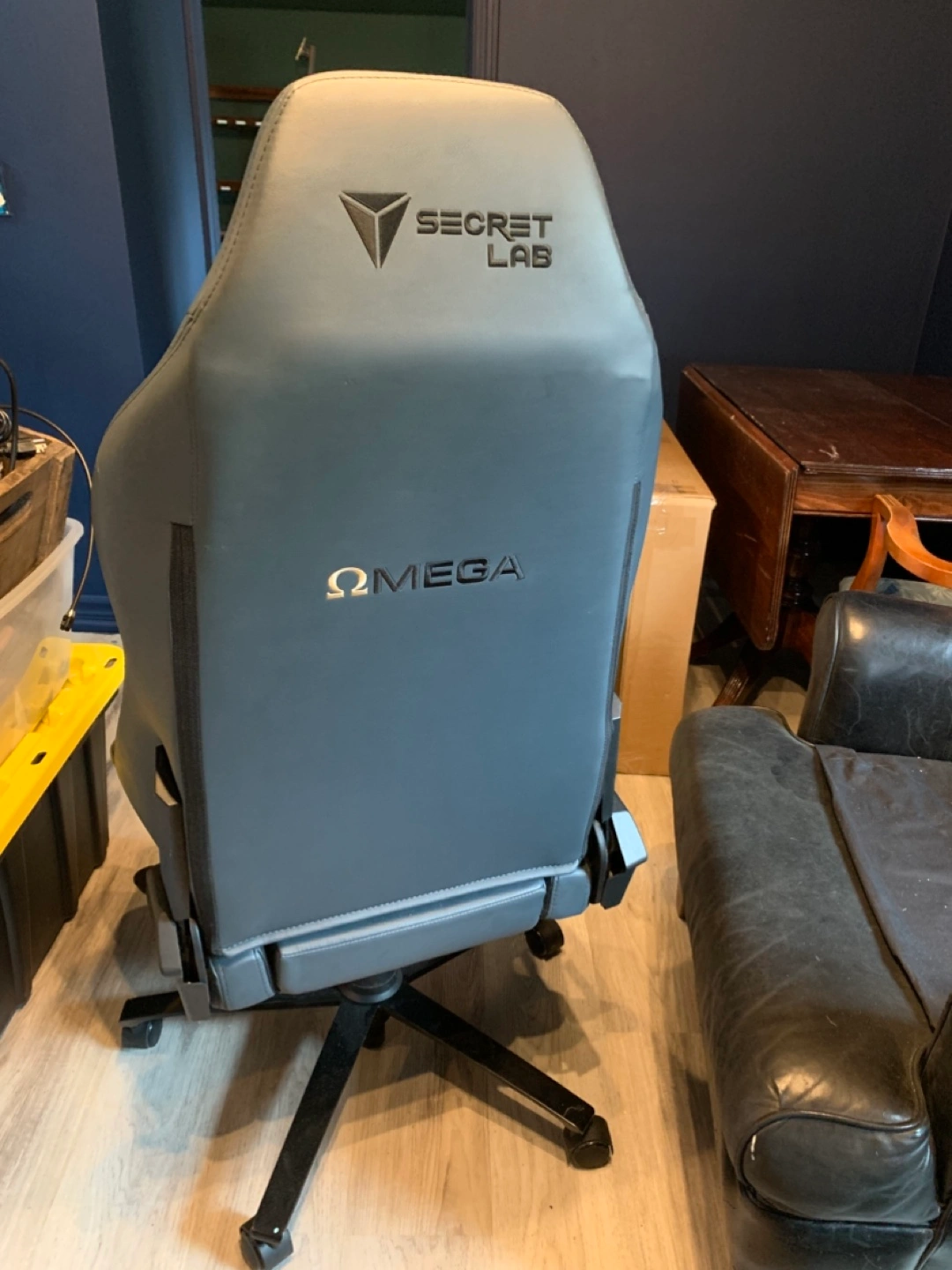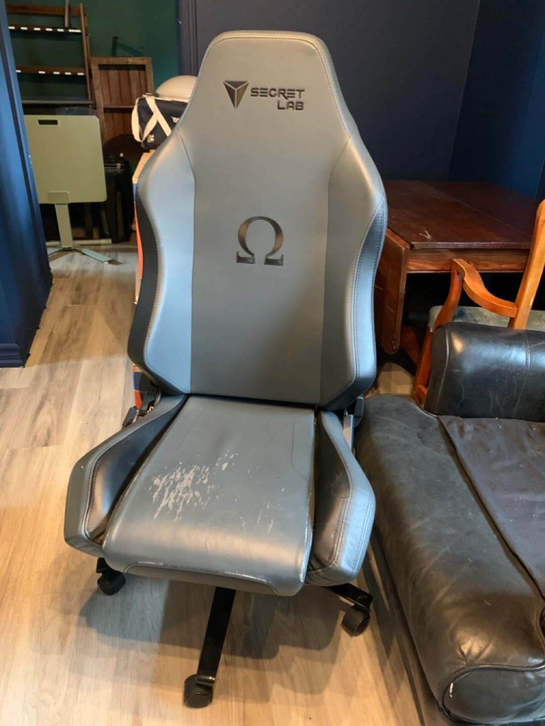 Secretlab Omega gaming chair. Grey and black. Some wear on the seat. Excellent lumbar support. Adjustable. The handles we were taken off but I still have them and they can be reattached, as well as the pillow. Originally purchased for $500-$600 Selling for $180