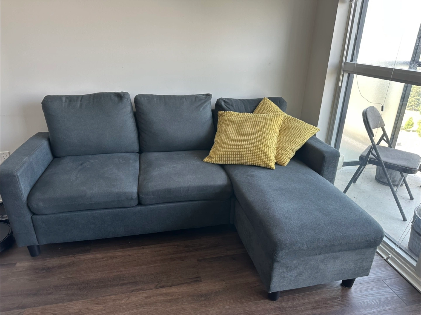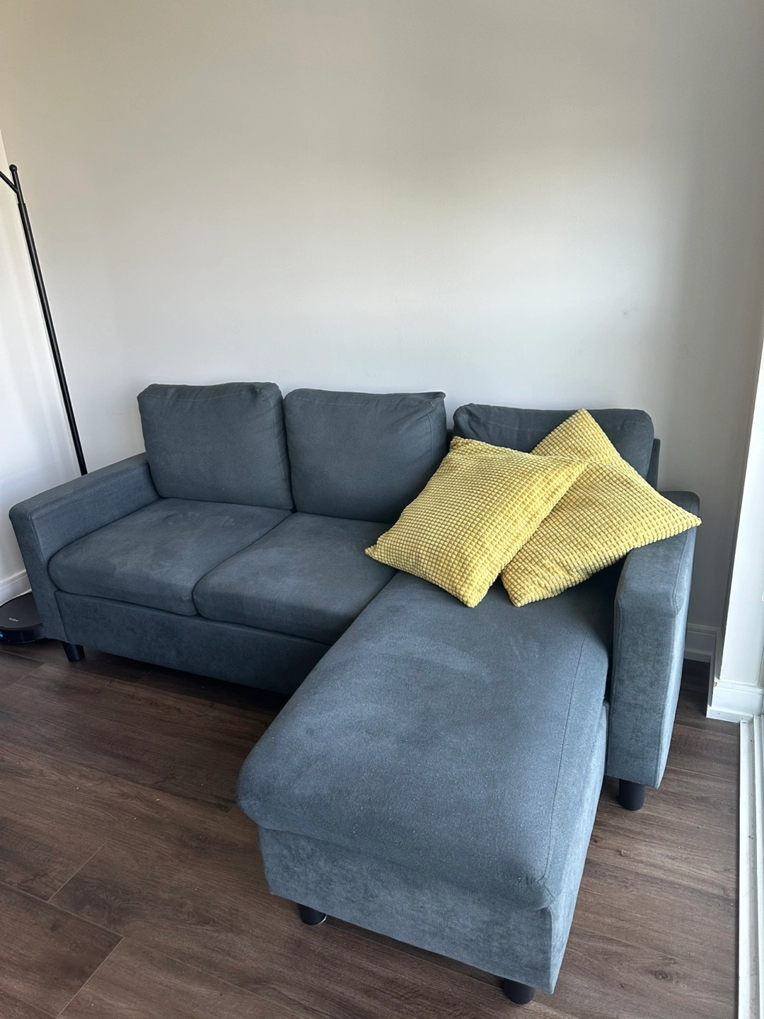 Selling a comfortable sectional sofa with a chaise lounge! It's in great condition and perfect for a living room or apartment. The chaise is great for relaxing and stretching out after a long day. It's a stylish and functional piece of furniture! Brand: Aadvik 2 “Wayfair” Retail price : $829.9 The piece is versatile and can be used as an L-shaped piece or as two pieces. The measurements of the largest piece are: 2 meters long by 68 cm deep. The measurements of the smallest piece are: 57 cm by 57 cm.
