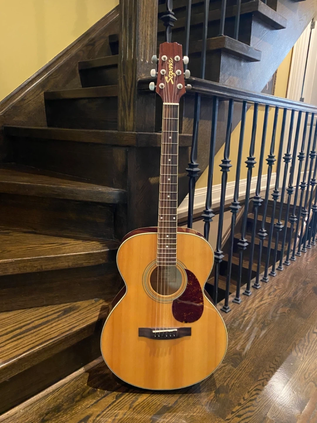 Selling a Segovia acoustic guitar excellent condition! It comes with a case, a strap, a capo, guitar picks, and a full set of strings. Ready for someone to pick up and play!