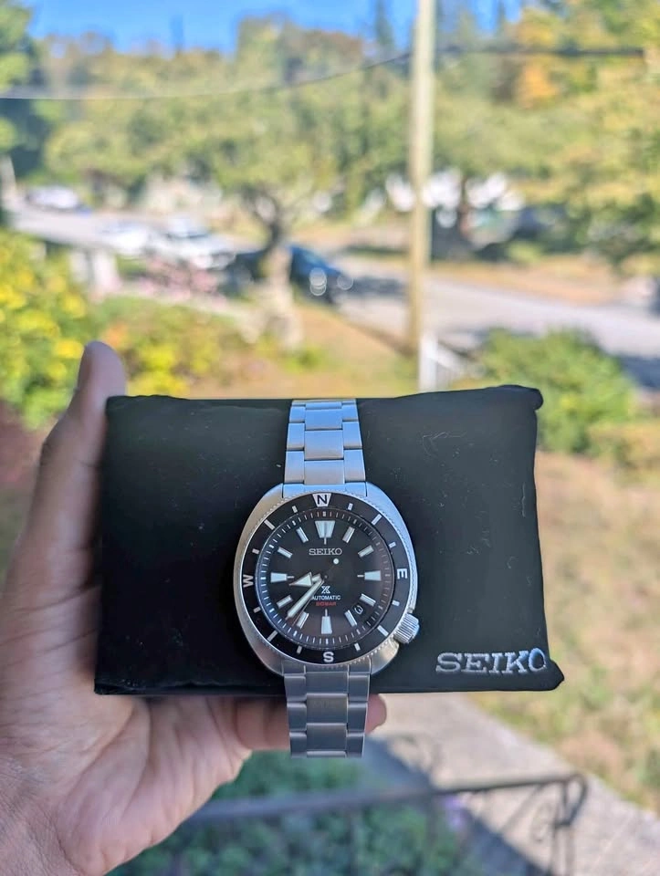 Selling my Seiko “Land Tortoise” automatic watch. Well cared for and fully functional. Condition: Excellent, minimal wear, keeps perfect time Includes: Original box, papers, and strap Specs: 42.4mm stainless steel case, black dial with lumen hands, 200m water resistance, Sapphire crystal. Purchased: Oct 2023. Pickup in Burnaby