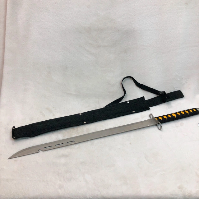 Available for pick-up in SW Airdrie or Inglewood SE Calgary on weekdays. The Sekizo Sword 26" Machete Knife is a stunning piece with a stainless steel blade featuring a straight edge. This single-handed sword is designed for display and decorative purposes. The black handle complements the sleek Japanese style, perfect for collectors or enthusiasts of Asian weaponry. Made with high-quality materials, this original reproduction brings a touch of the samurai theme to your collection. This sword is crafted with precision and attention to detail, embodying the essence of traditional sword-making. Ideal for those who appreciate the artistry and history of Asian culture, this Sekizo Sword is a must-have for any sword enthusiast.