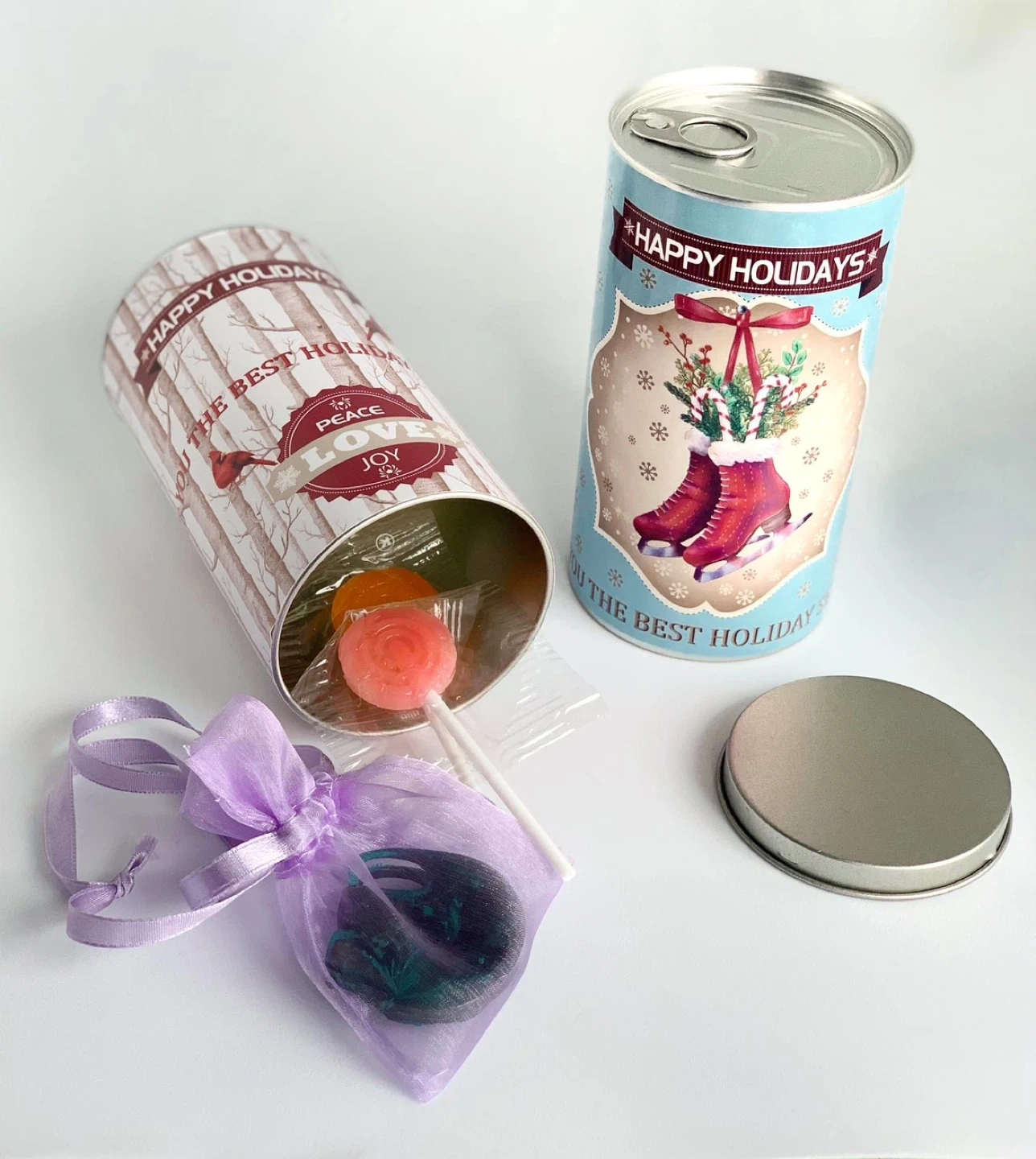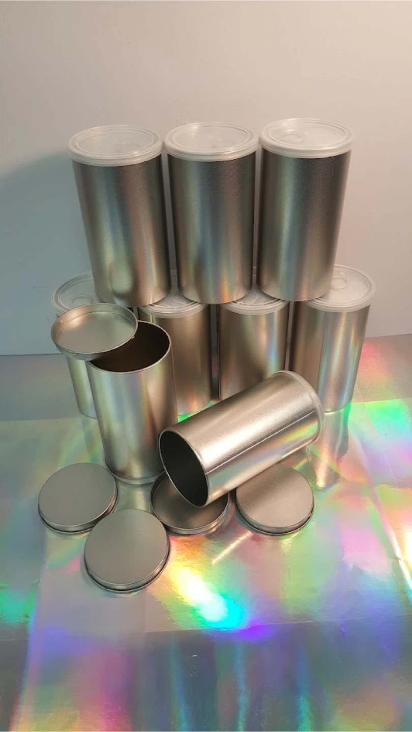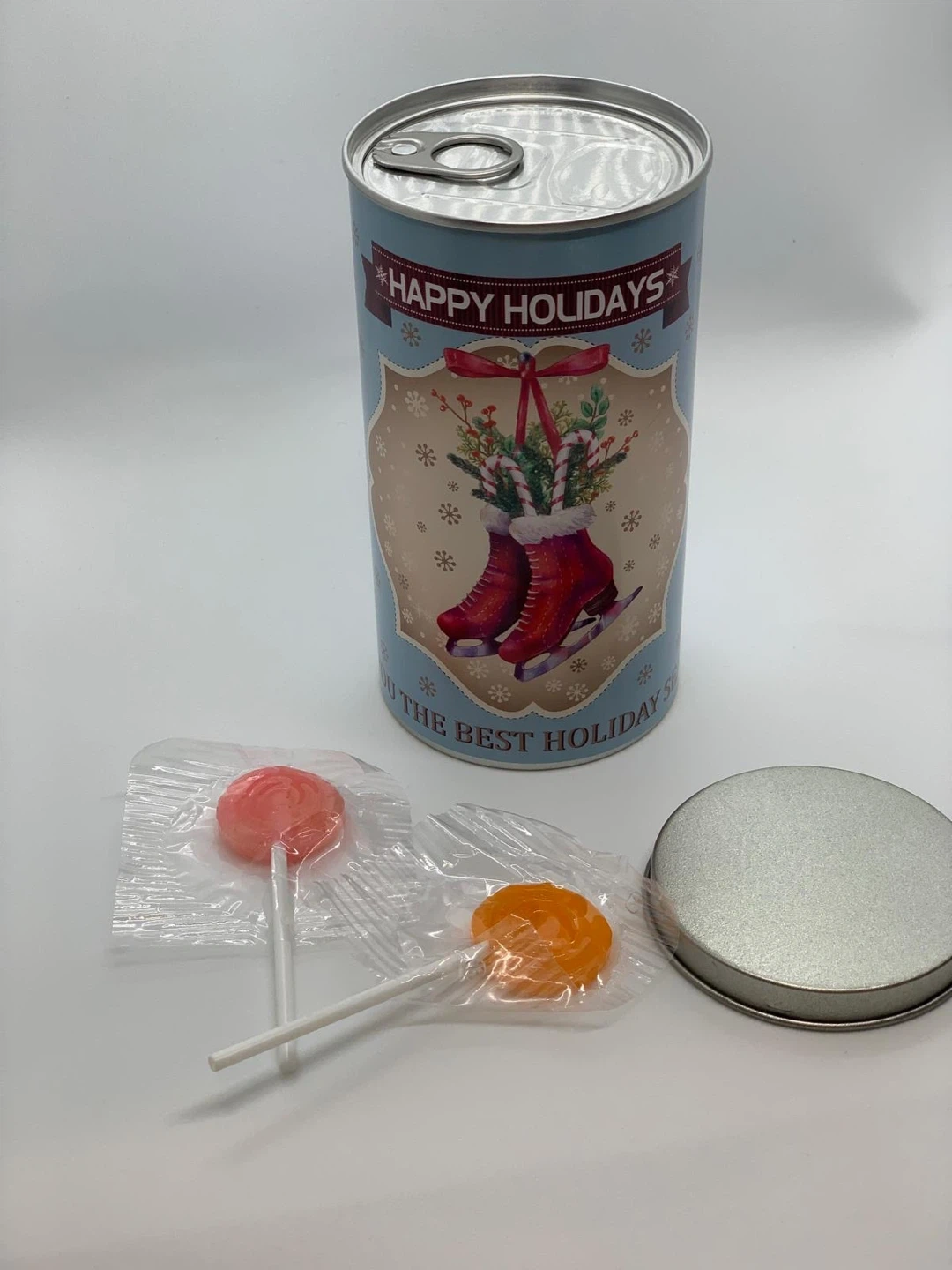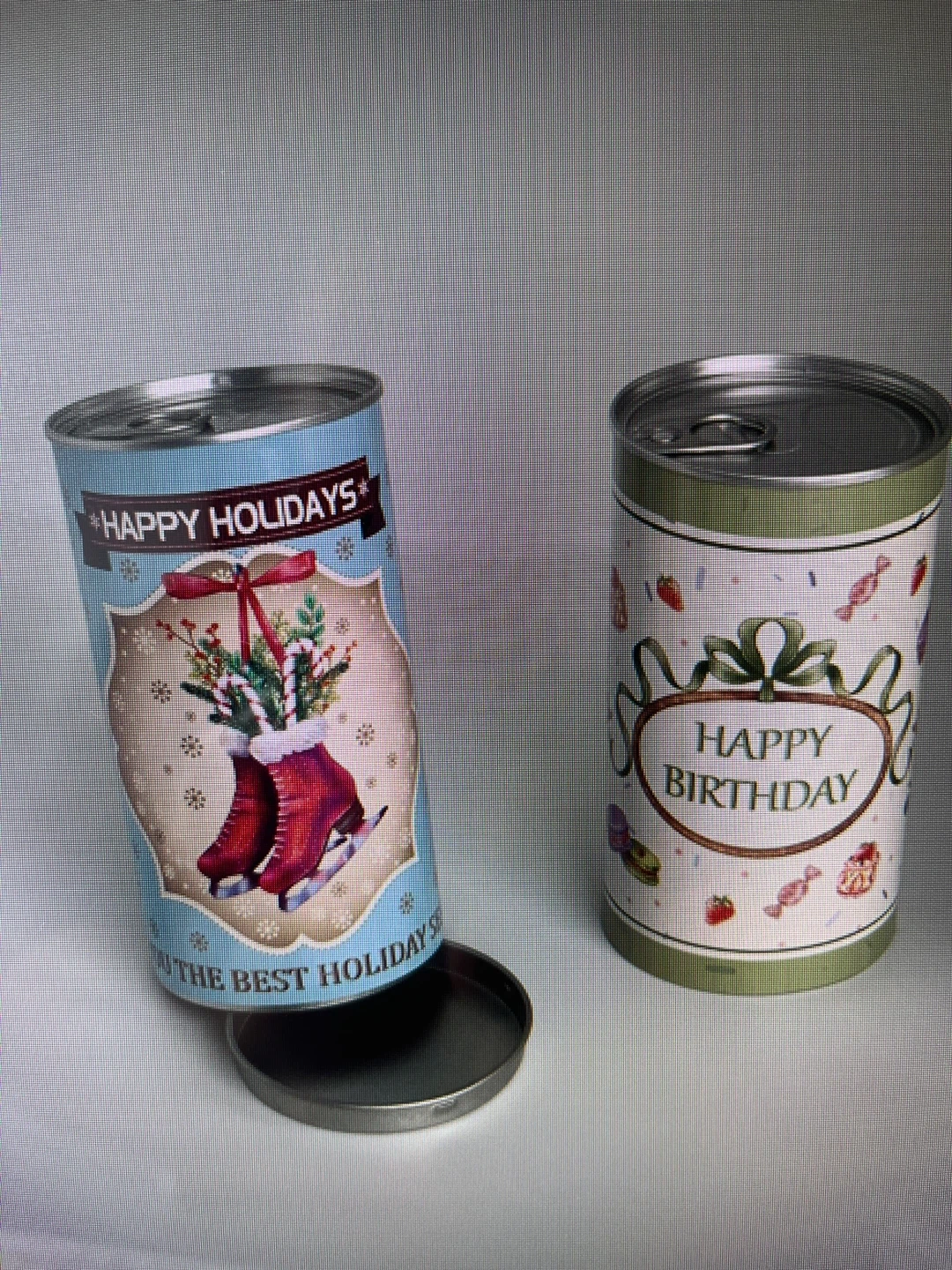 Selling these cute decorative self sealing gift cans! Brand new. They're perfect for small gifts or treats. We have 2500 cans in stock.