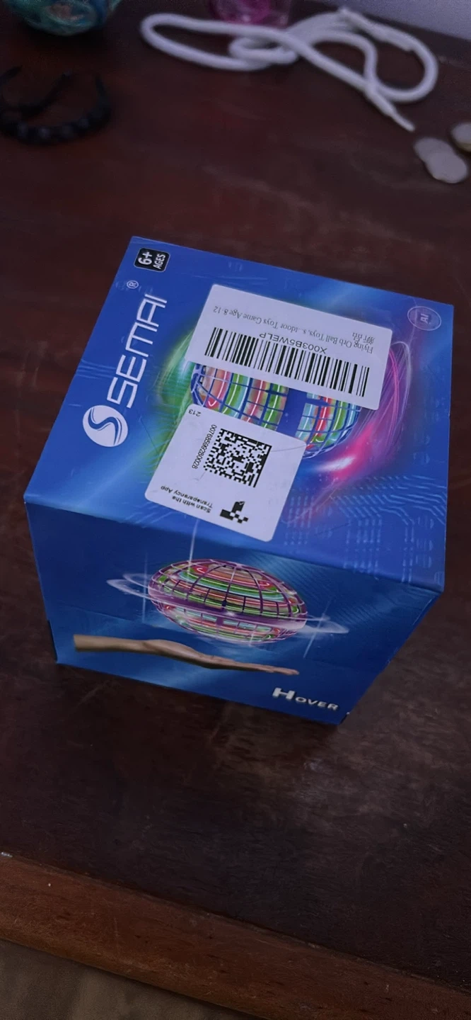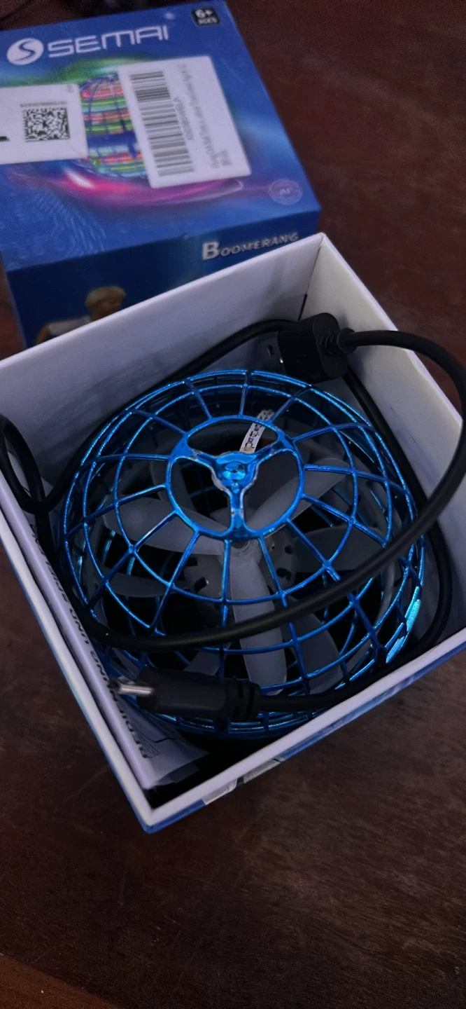 Selling a Semai Flying Orb Ball toy, suitable for both indoor and outdoor use! The box indicates it's great for ages 6-12. It comes with its original box and a charging cable. This fun toy is ready for a new home!