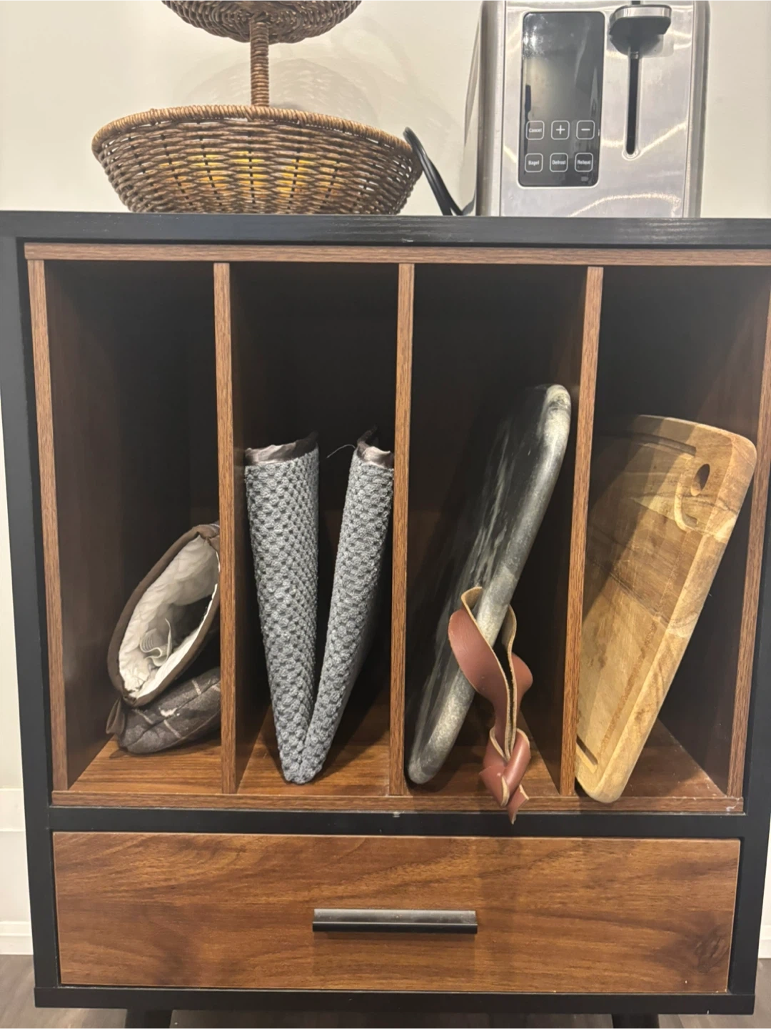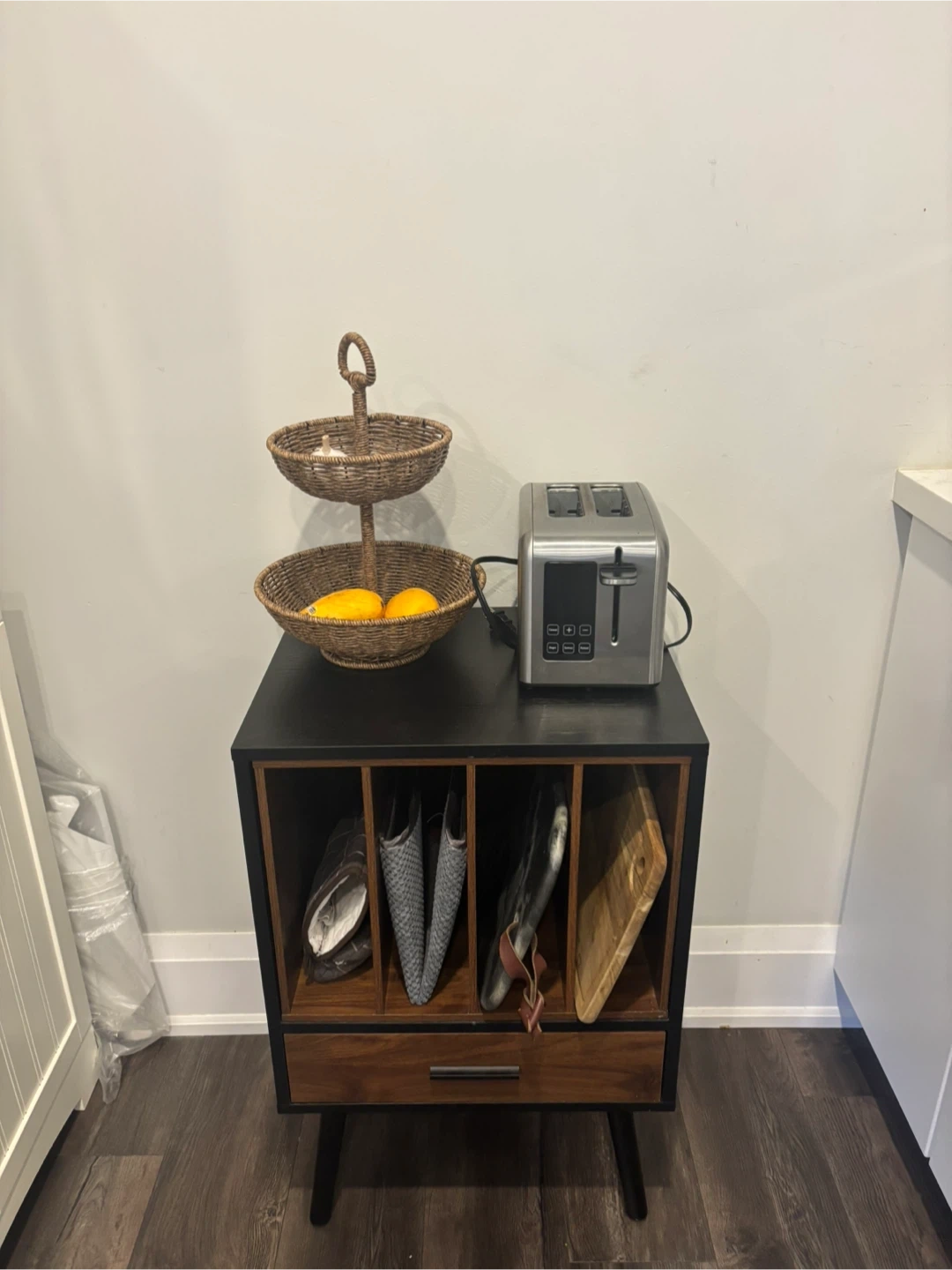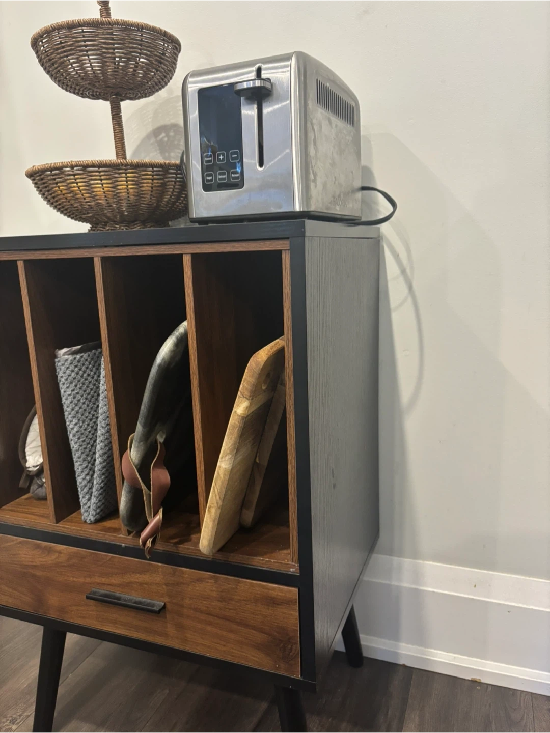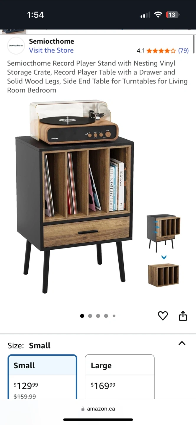 Selling a small Semiocthome record player stand. It has a nesting vinyl storage crate with a drawer and solid wood legs. It can be used as a side end table for turntables in a living room or bedroom. Originally bought for $129.99