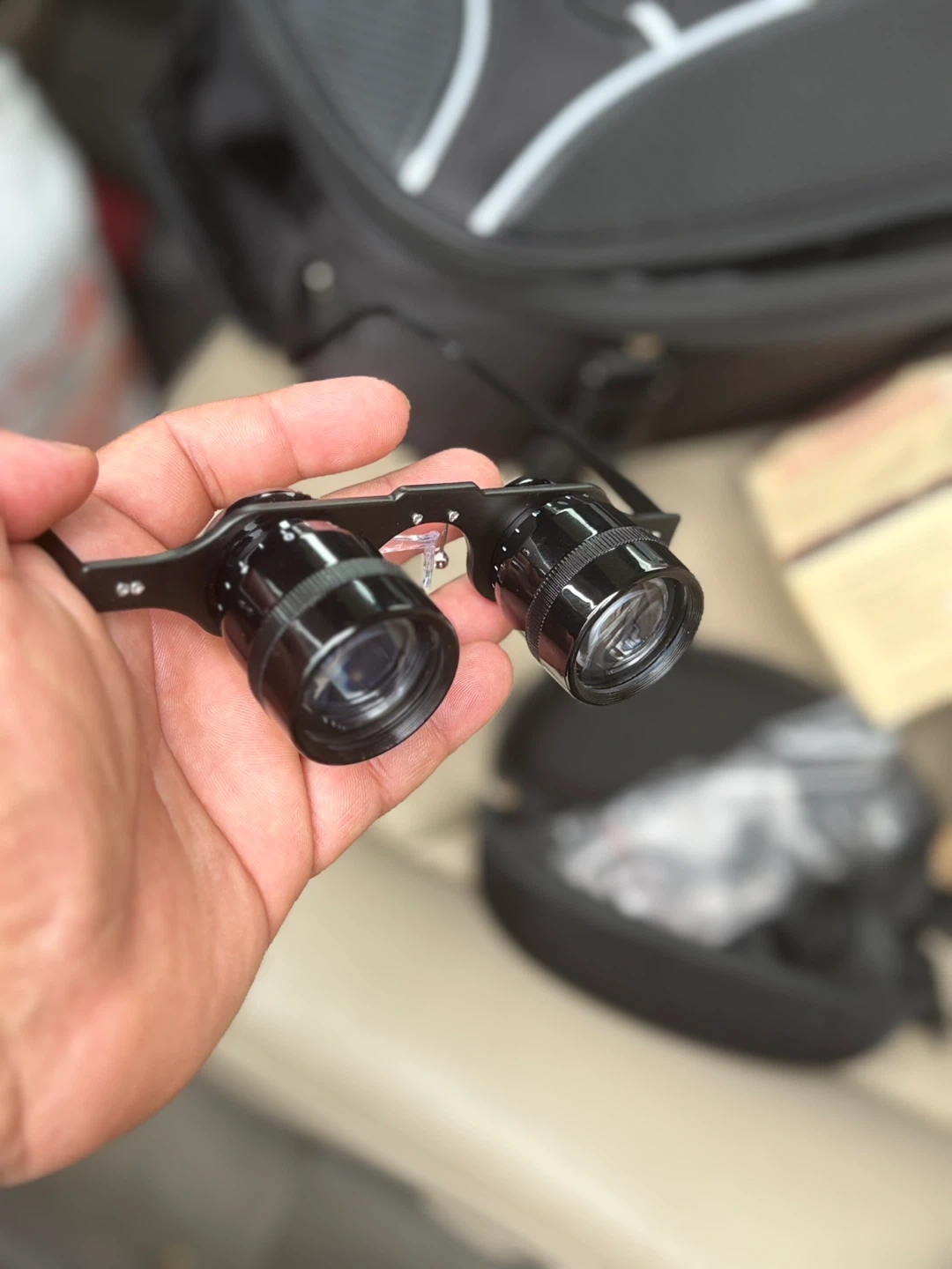 Selling a pair of Senmonis dental loupes binocular glasses! Package includes: - Side Shield - Head Strap - Grip - Screwdriver - Ear Keepers - Cleaning Cloth - Carrying Case