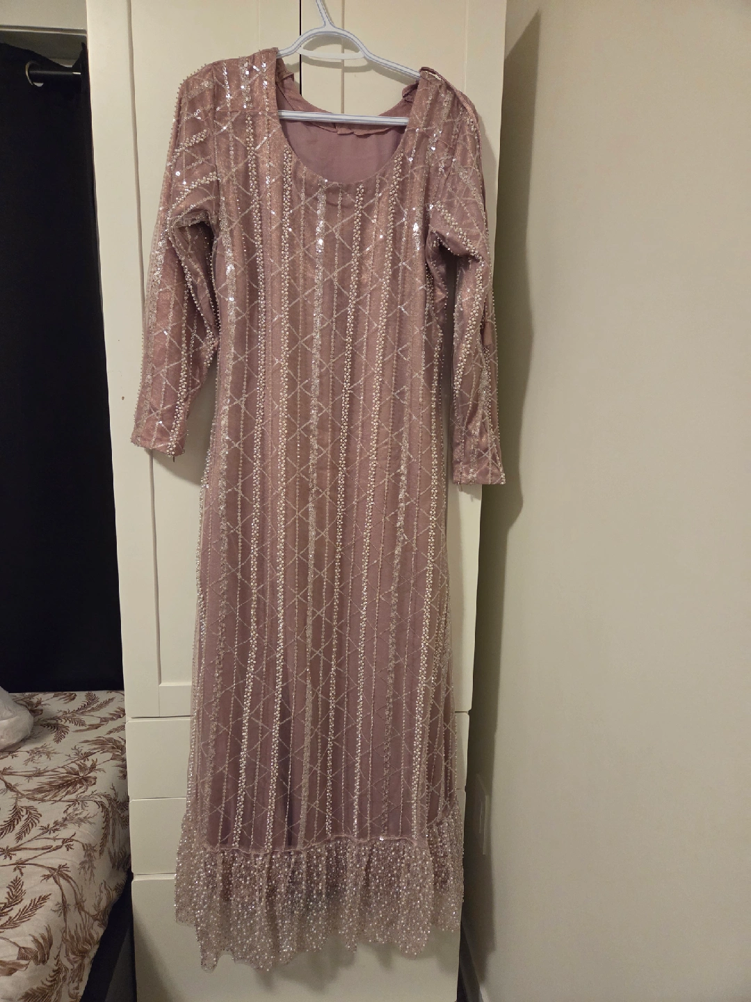 Here's a beautiful maxi dress with sequin embellishments! It's perfect for special occasions or adding a touch of sparkle to your wardrobe. The dress features a lovely design and is sure to make you stand out