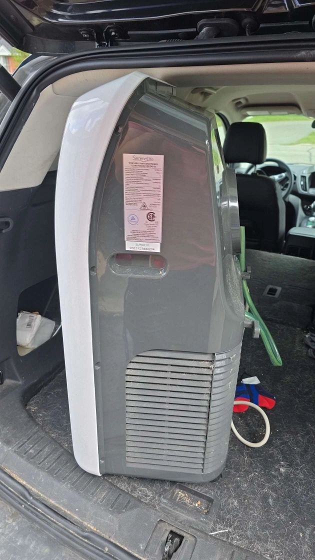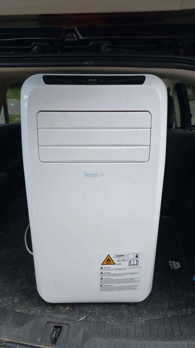Selling a SereneLife portable air conditioner. It's perfect for cooling down a room quickly and efficiently. It's in good condition and ready to use. It features a sleek design and is easy to move around. Great for those hot summer days!