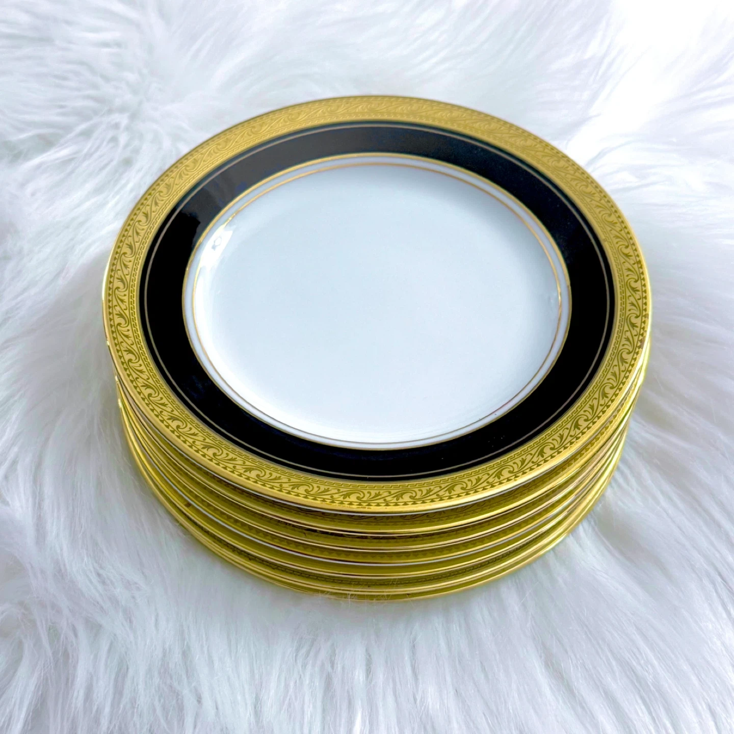 Set 7 Noritake Crestwood cobalt blue dessert plates