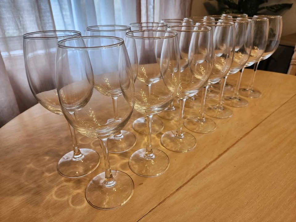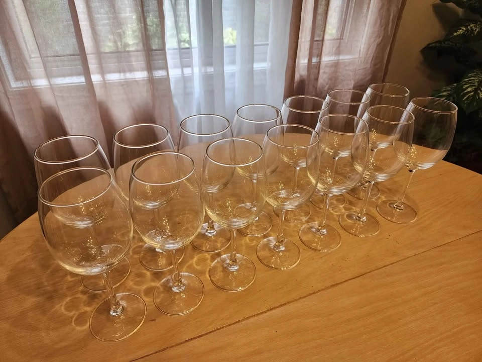 Set of 15 transparent wine glasses, perfect for family gatherings, parties, or everyday use. All glasses are in great condition and ready to use.