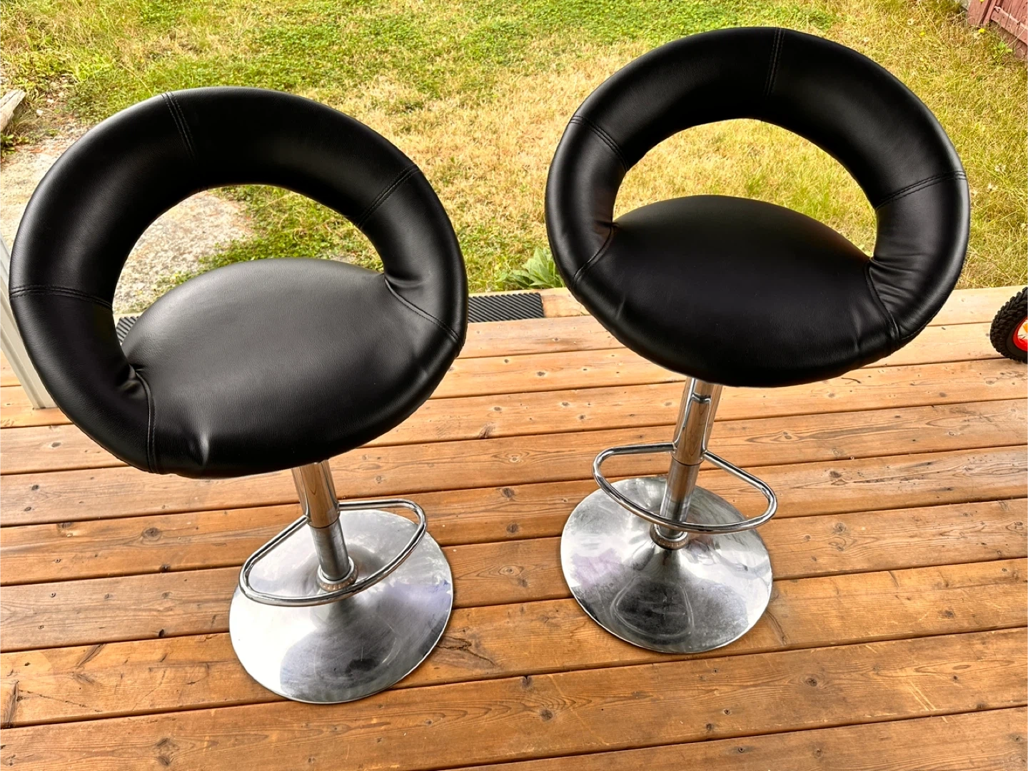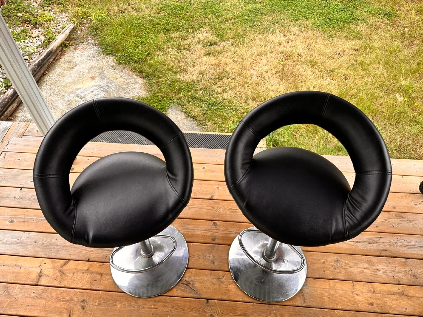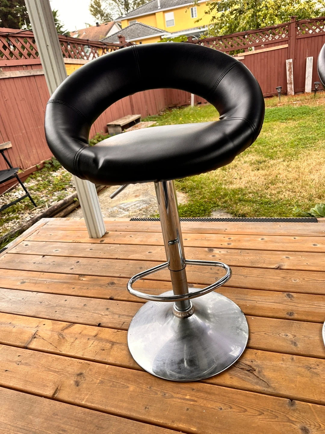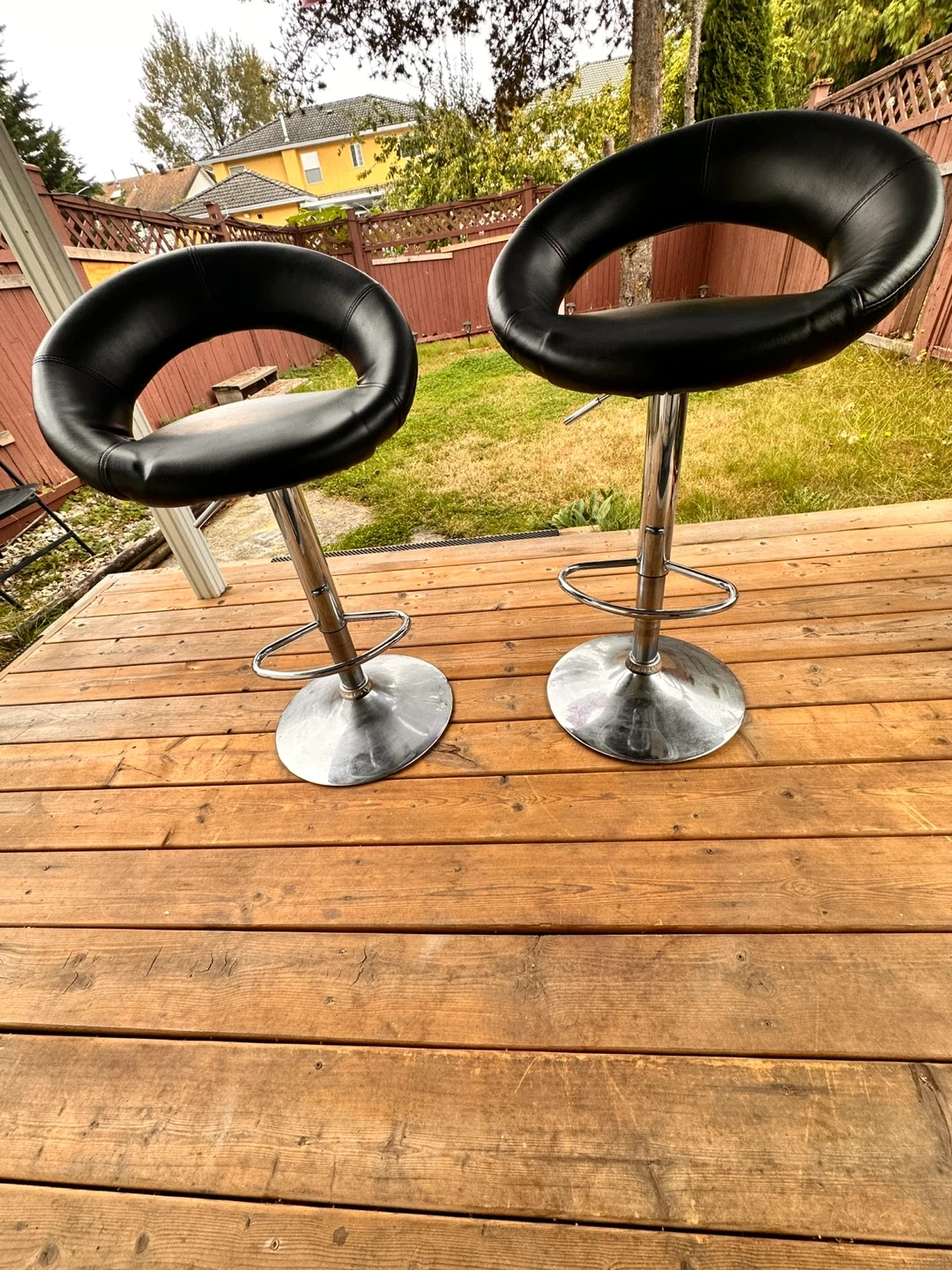 Modern Bar Stools – Great Deal! Selling *2 stylish black bar stools* with chrome base and footrest. Comfortable, sleek, and perfect for kitchen islands or bar areas. - Price: 2 for $ 50 or 1 for $ 30 - Good condition - Swivel seat with adjustable height Pickup in Surrey(Near Guildford). Message if interested!