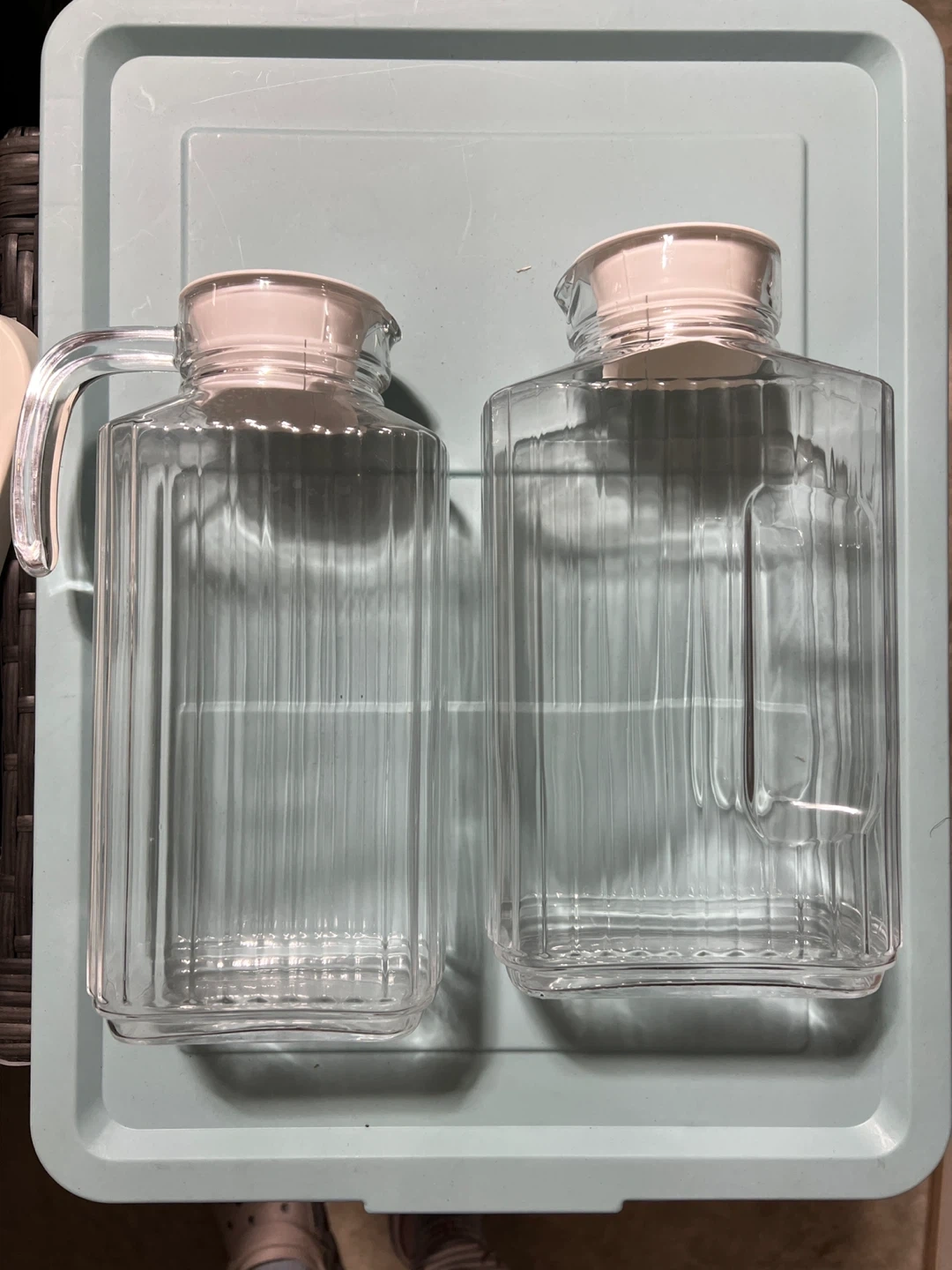 Selling two clear glass pitchers. They're in great shape and ready to hold your favourite beverages. Perfect for summer get-togethers or everyday use!