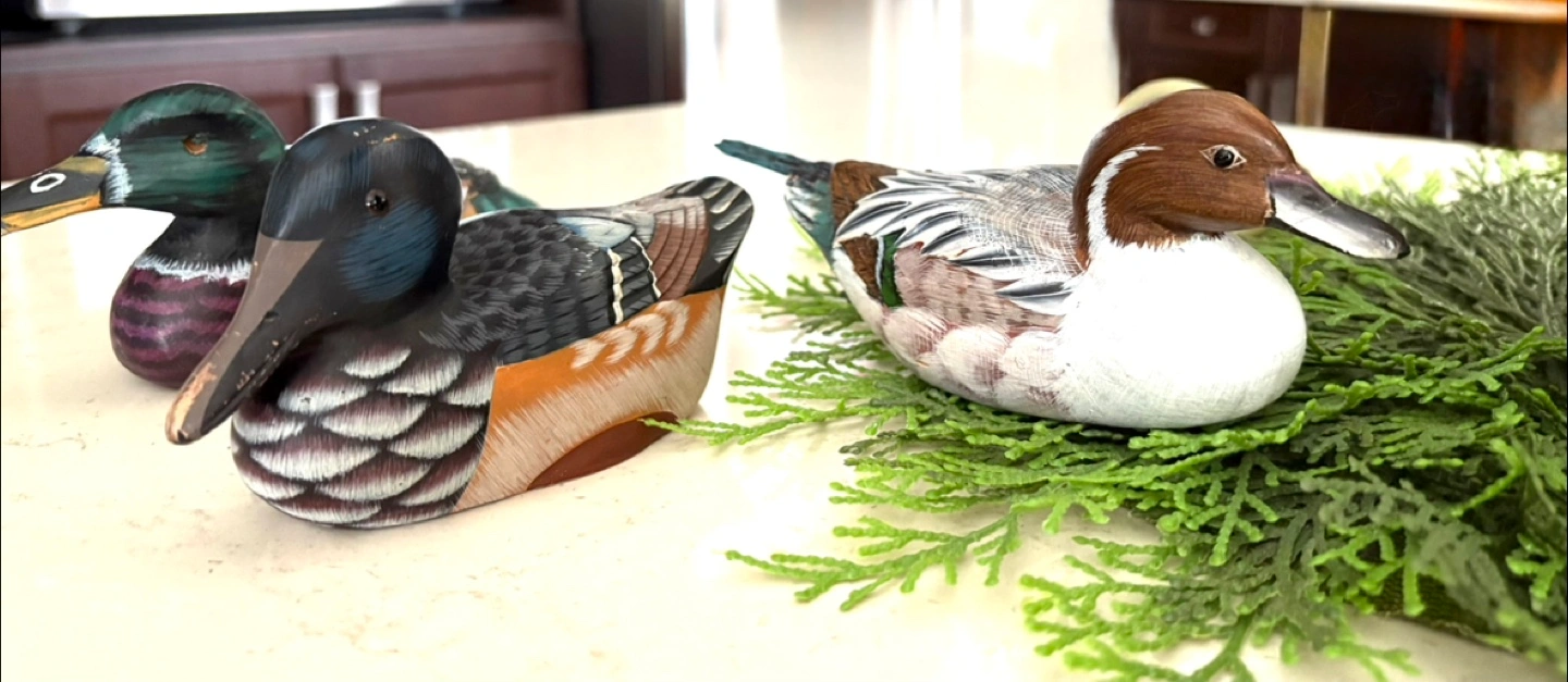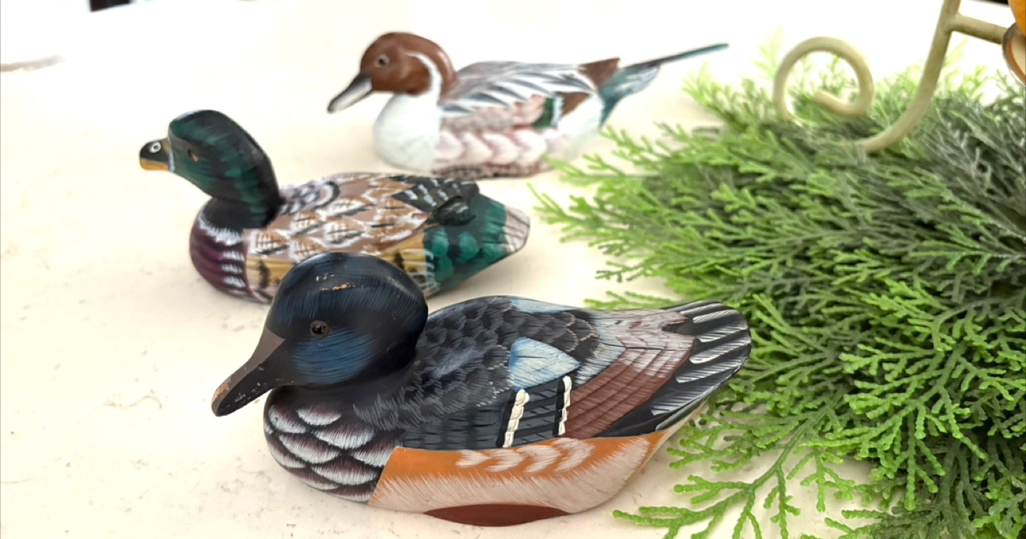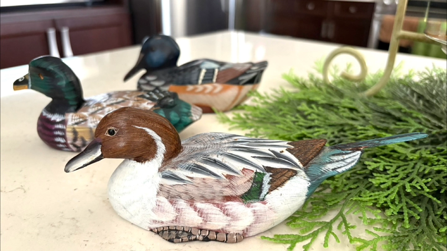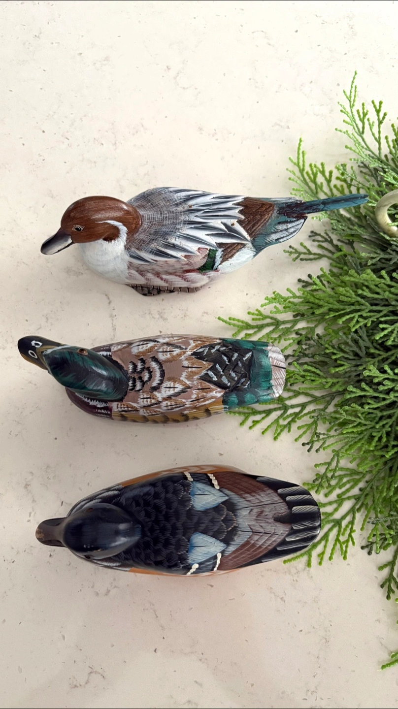 Here's a set of three charming carved wooden ducks 🦆🦆 🦆 They are beautifully detailed and would make a lovely addition to any home decor. They have a rustic, handcrafted feel, perfect for adding a touch of nature to your space. 8” 6” 6” long All for $17