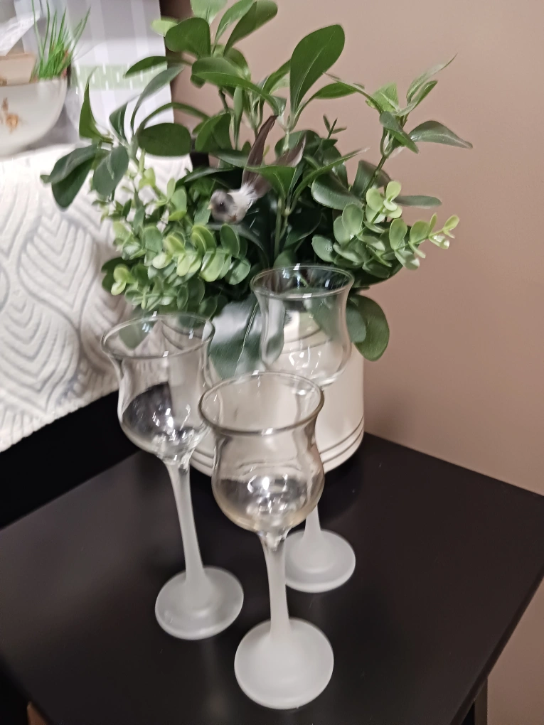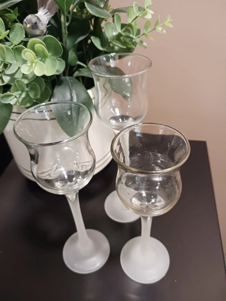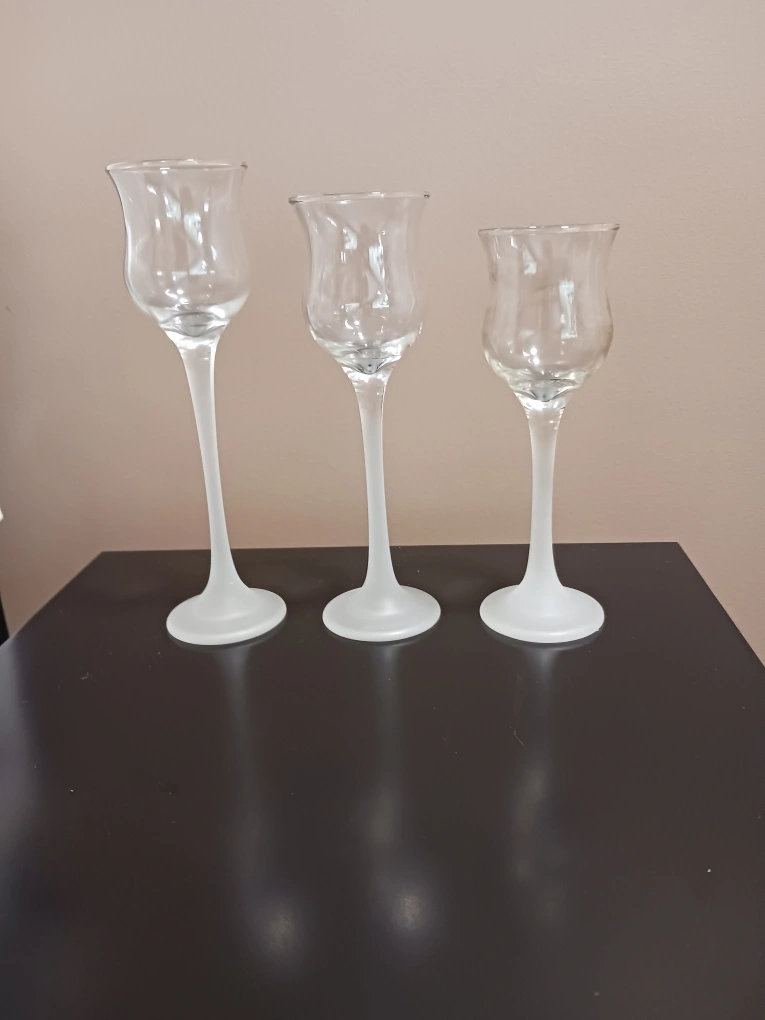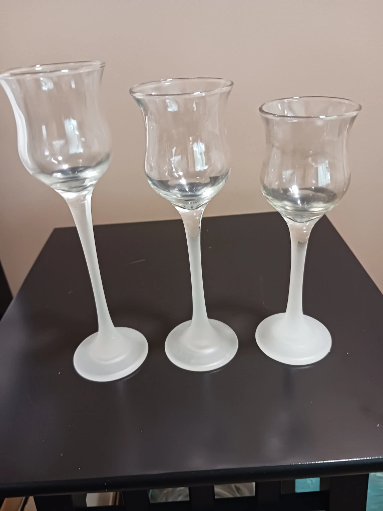 Iced Crystal Trio Set. Made by Partylite. Very good condition. Pick up on Raquette St between Portage and Allard. Sorry, no delivery. ๐ท AI description: Selling a set of three clear glass candle holders. They have a frosted glass base and a tulip-shaped top. They would make a beautiful addition to any table setting or home decor.