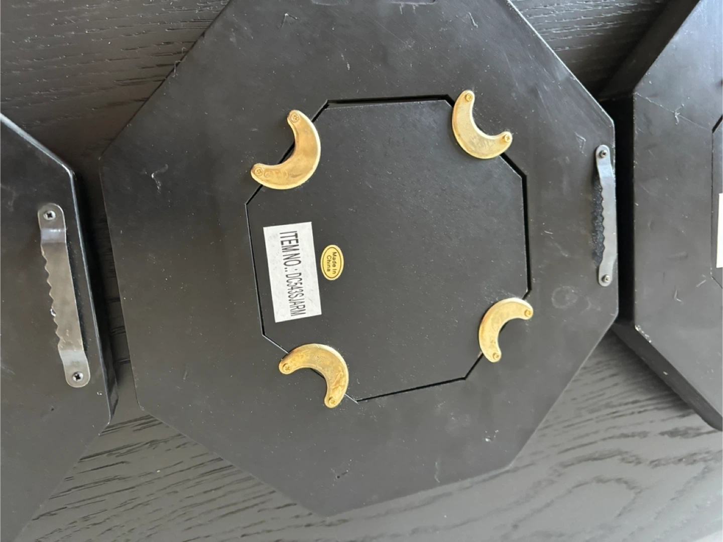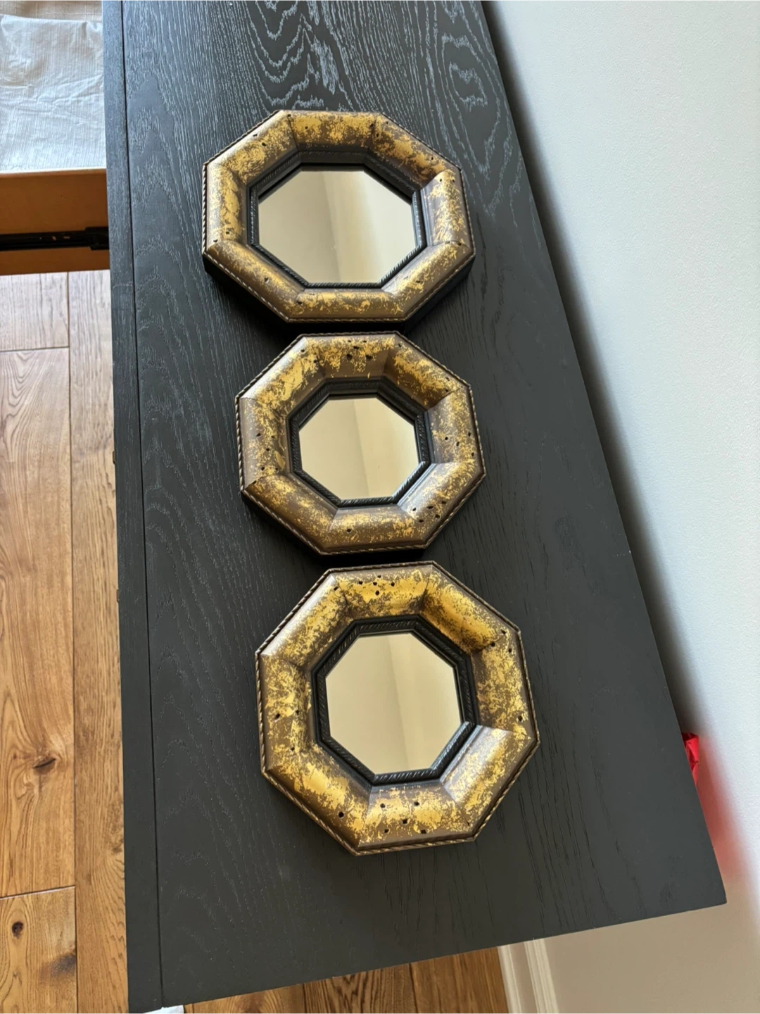 Selling a set of three octagon-shaped mirrors! They have a unique, vintage-style gold and black frame. Perfect for adding a touch of character to any room