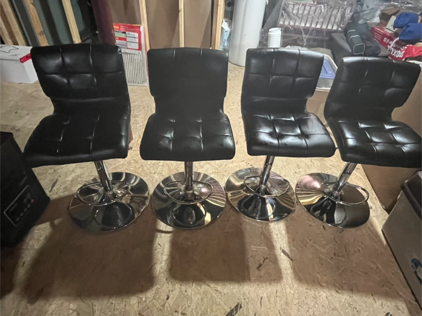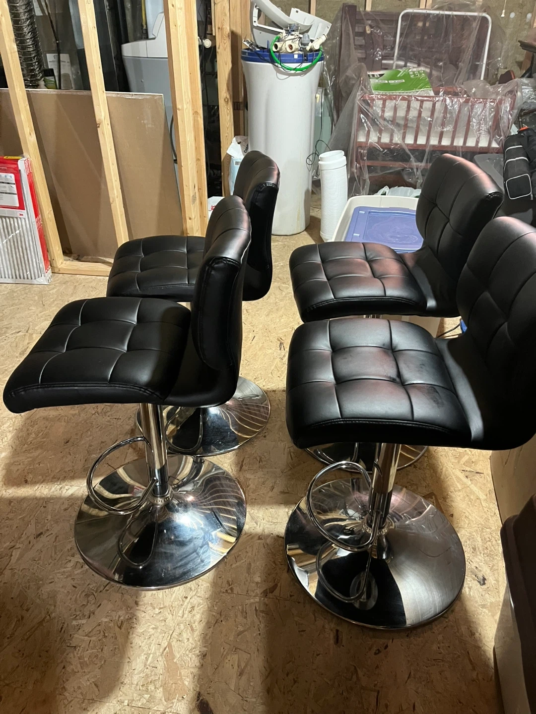 $70 per stool. Great condition. Add a touch of modern elegance to your kitchen or bar area with these stylish black bar stools. Featuring a sleek chrome base and comfortable padded seats, these stools are perfect for enjoying a casual meal or entertaining guests. Here are the details: * Adjustable height * Swivel function * Chrome base * Padded seat and back Don't miss out on the opportunity to own these chic bar stools! If the ad's up, they're still available! Pick up Aurora Ontario