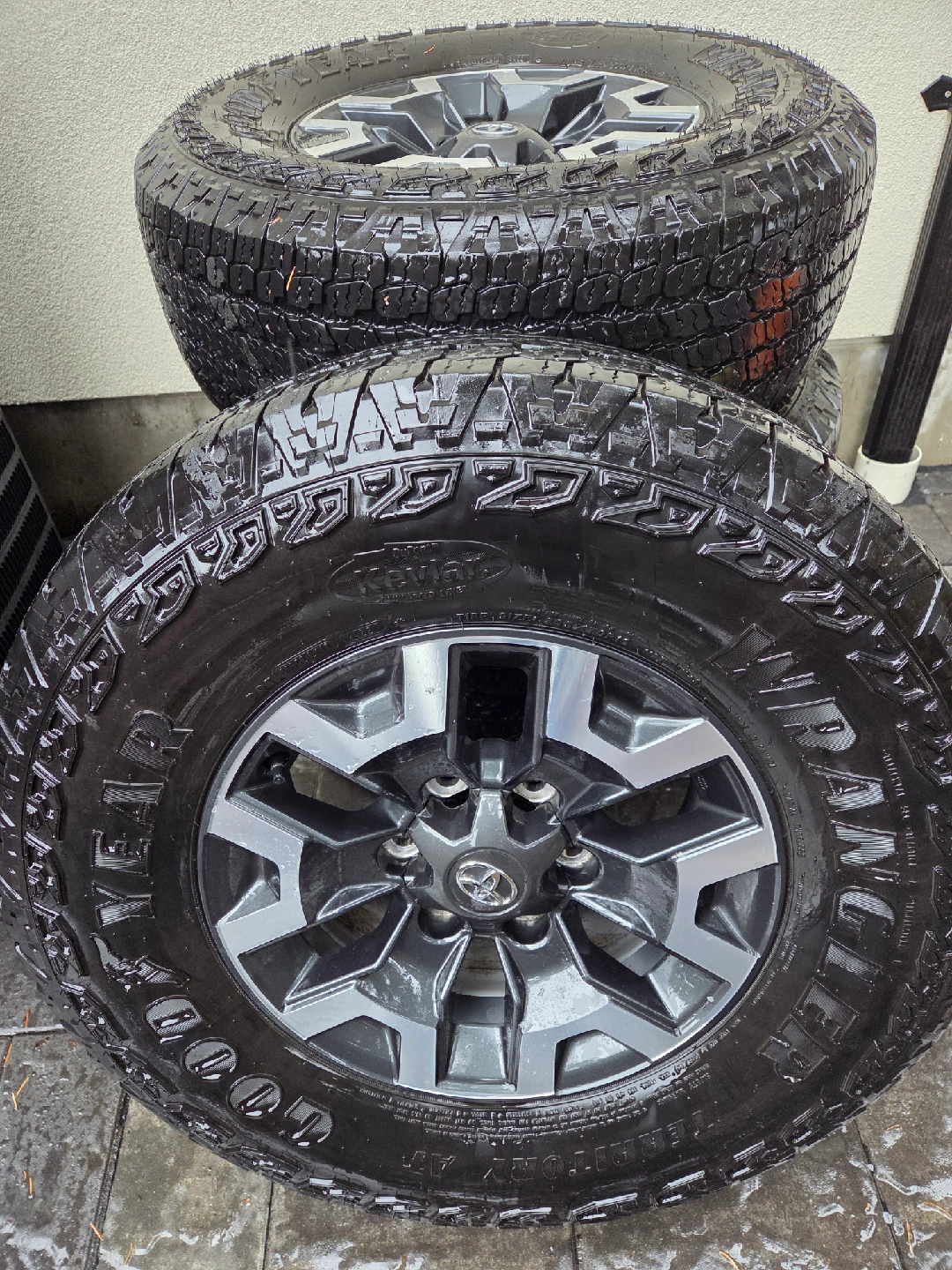 Selling a set of four Goodyear Wrangler All-Terrain tires. The size is 265/70R16. They are in good condition and ready for your next adventure!